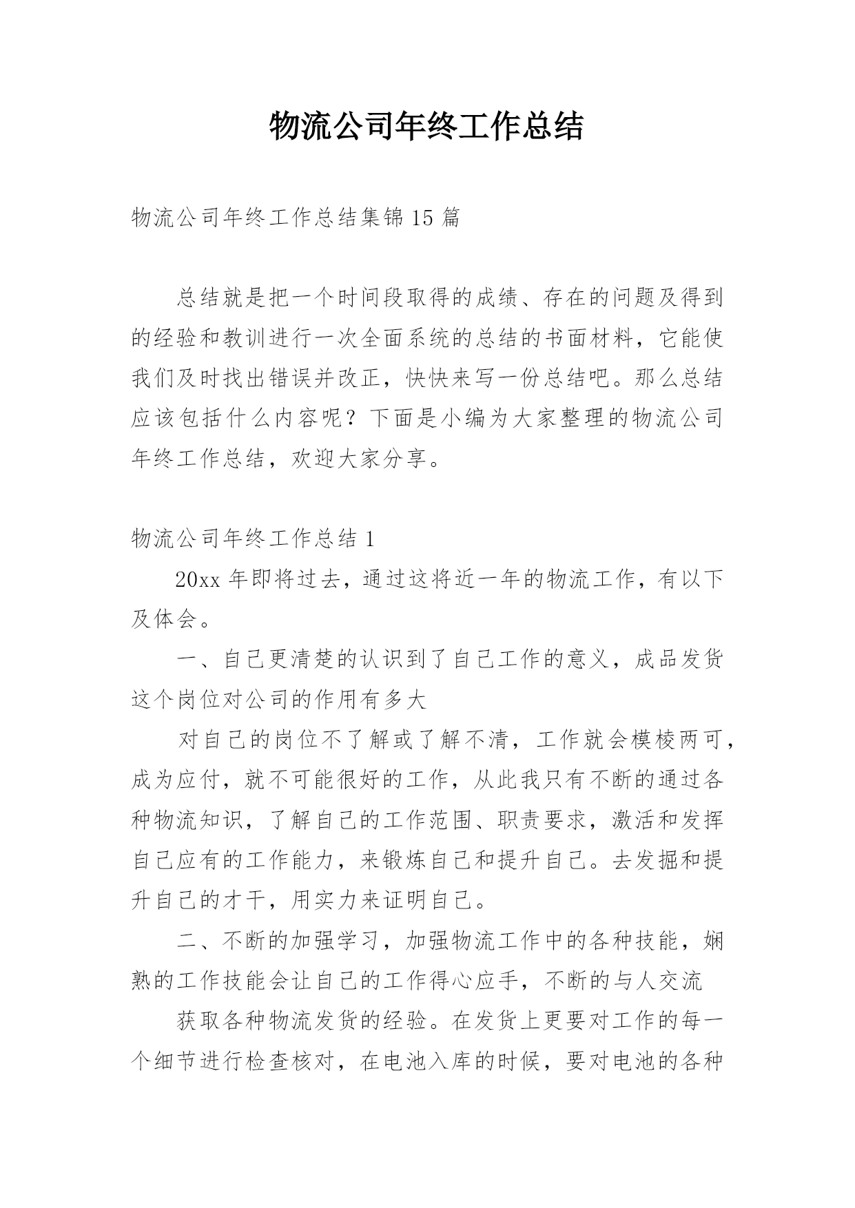 物流公司年终工作总结物流公司年终工作总结集锦15篇总结就是把一个时间段取得的成绩、存在的问题及得到的经验和教训进行一次全面系统的总结的书面材料,它能使我们及时找出错误并改正,快快来写一份总结吧。那么总结应该包括什么内容呢?下面是小编为大家整理的物流公司年终工作总结,欢迎大家分享。物流公司年终工作总结120xx年即将过去,通过这将近一年的物流工作,有以下及体会。一、自己更清楚的认识到了自己工作的意义,成品发货这个岗位对公司的作用有多大对自己的岗位不了解或了解不清,工作就会模棱两可,成为应付,就不可能很好的工