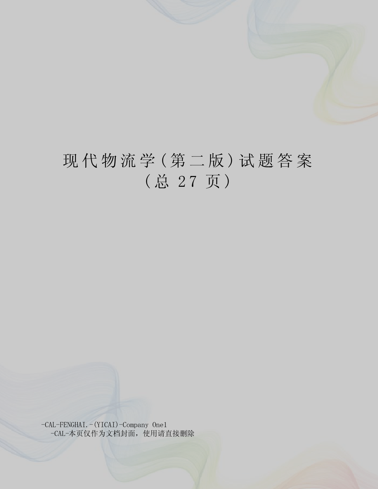 现代物流学(第二版)试题答案(总27页)-CAL-FENGHAI.-(YICAI)-CompanyOne1-CAL-本页仅作为文档封面,使用请直接删除《现代物流学》试卷A合分人:复查人:分数评卷人一、判断题(每题1分,共10分)题号一二三四五六总分评卷人分数1.仓储是“对物品进行保存及对其数量、质量进行管理控制的活动。(Y)2.包装材料的选择直接关系到包装质量和包装费用,有时也影响运输、装卸搬运和仓储环节作业的进行。(Y)3.物流系统中库存量越大,库存费用越高,物流服务水平就越高,则物流系统最优。(N)4