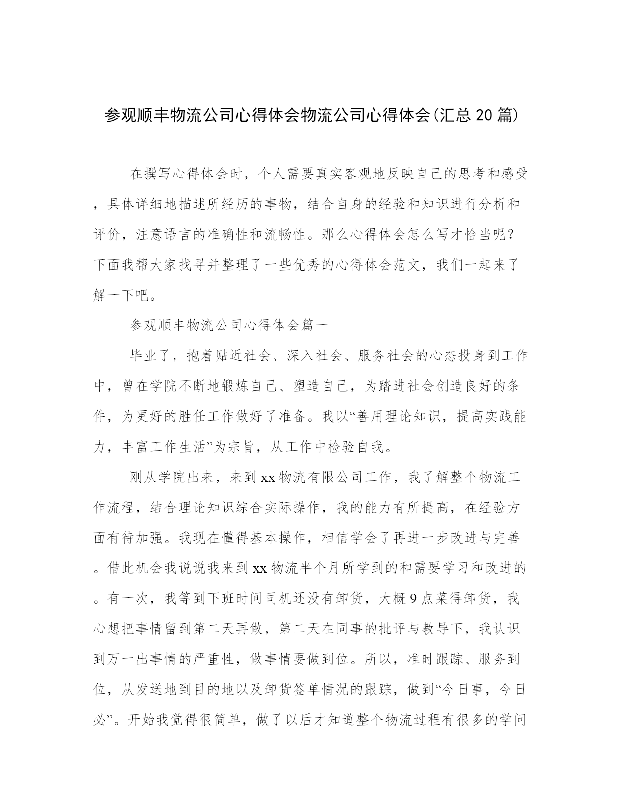 参观顺丰物流公司心得体会物流公司心得体会(汇总20篇).docx