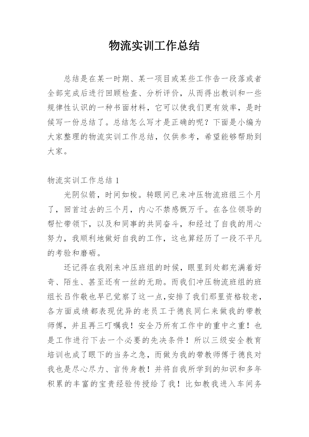 物流实训工作总结总结是在某一时期、某一项目或某些工作告一段落或者全部完成后进行回顾检查、分析评价,从而得出教训和一些规律性认识的一种书面材料,它可以使我们更有效率,是时候写一份总结了。总结怎么写才是正确的呢?下面是小编为大家整理的物流实训工作总结,仅供参考,希望能够帮助到大家。物流实训工作总结1光阴似箭,时间如梭。转眼间已来冲压物流班组三个月了,回首过去的三个月,内心不禁感慨万千。在各位领导的帮忙带领下,以及和同事的共同奋斗,和经过了自我的用心努力,我顺利地做好自我的工作,这也算经历了一段不平凡的考验和磨