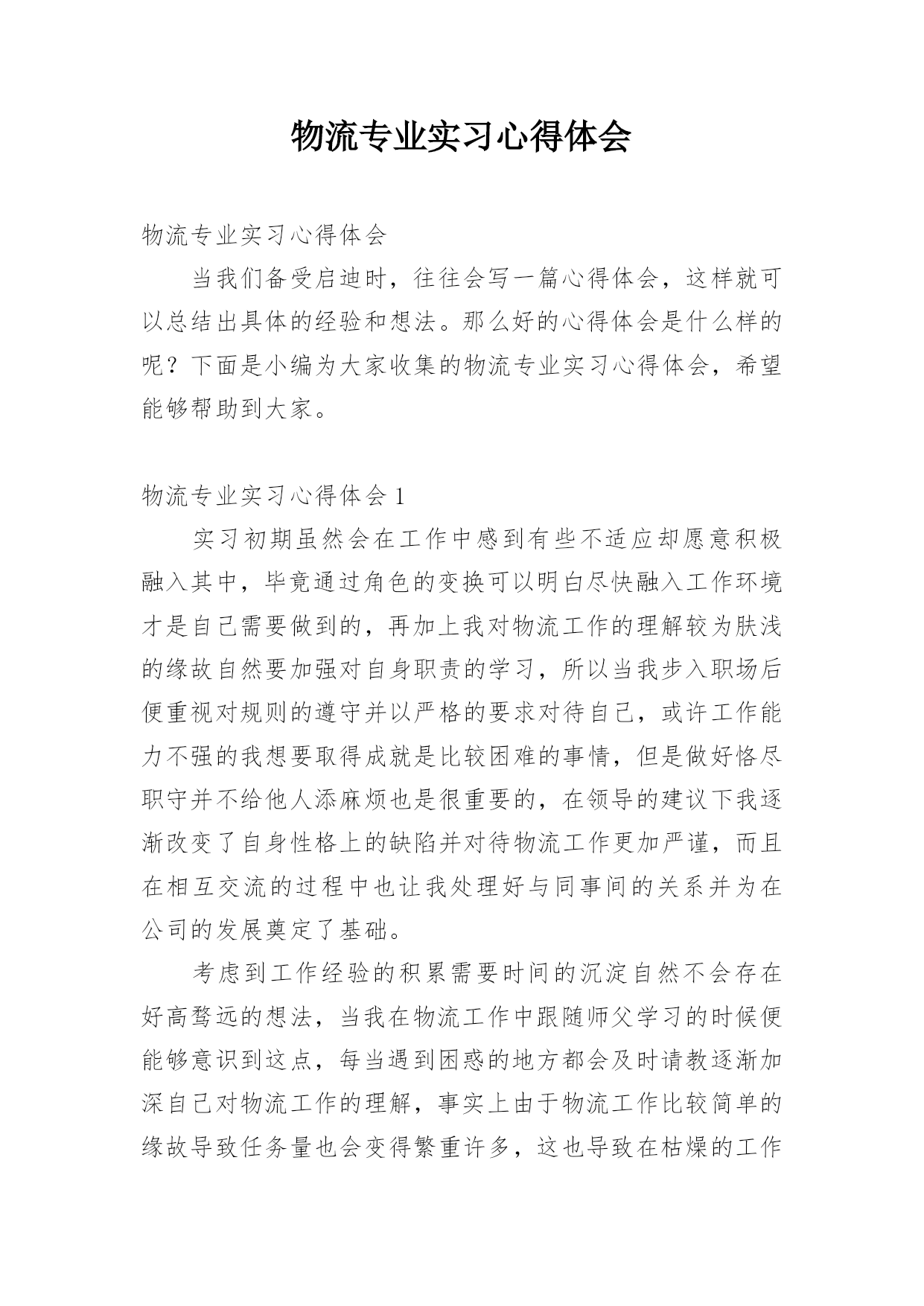 物流专业实习心得体会物流专业实习心得体会当我们备受启迪时,往往会写一篇心得体会,这样就可以总结出具体的经验和想法。那么好的心得体会是什么样的呢?下面是小编为大家收集的物流专业实习心得体会,希望能够帮助到大家。物流专业实习心得体会1实习初期虽然会在工作中感到有些不适应却愿意积极融入其中,毕竟通过角色的变换可以明白尽快融入工作环境才是自己需要做到的,再加上我对物流工作的理解较为肤浅的缘故自然要加强对自身职责的学习,所以当我步入职场后便重视对规则的遵守并以严格的要求对待自己,或许工作能力不强的我想要取得成就是比
