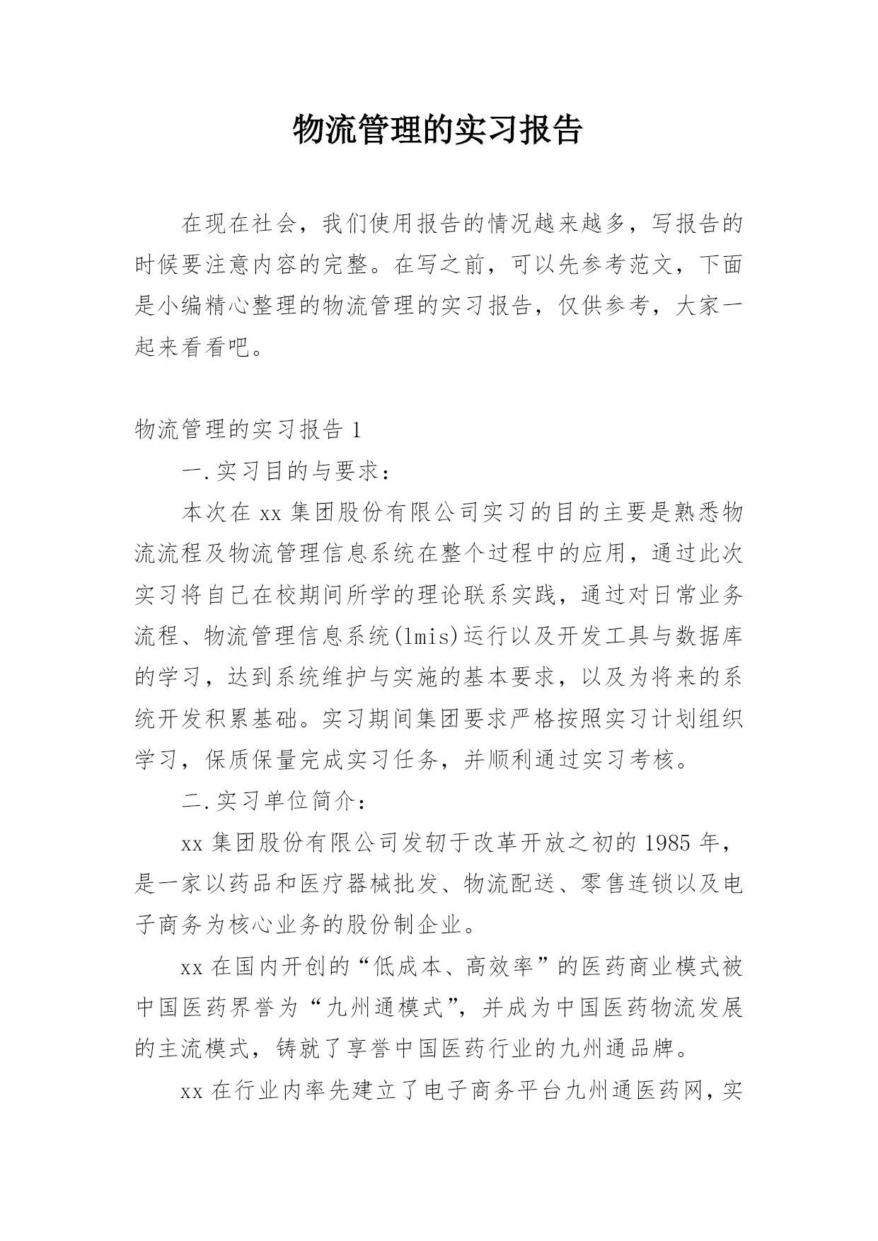 物流管理的实习报告在现在社会,我们使用报告的情况越来越多,写报告的时候要注意内容的完整。在写之前,可以先参考范文,下面是小编精心整理的物流管理的实习报告,仅供参考,大家一起来看看吧。物流管理的实习报告1一.实习目的与要求:本次在xx集团股份有限公司实习的目的主要是熟悉物流流程及物流管理信息系统在整个过程中的应用,通过此次实习将自己在校期间所学的理论联系实践,通过对日常业务流程、物流管理信息系统(lmis)运行以及开发工具与数据库的学习,达到系统维护与实施的基本要求,以及为将来的系统开发积累基础。实习期间集