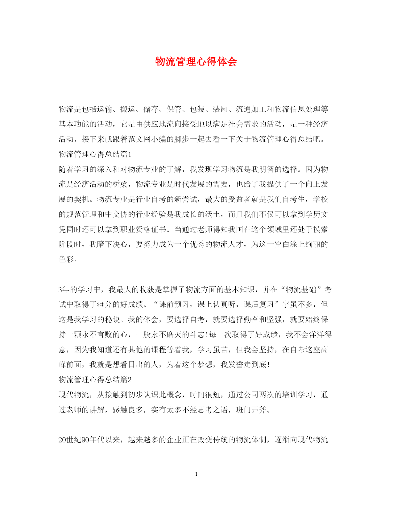 此资料由网络收集而来,如有侵权请告知上传者立即删除。资料共分享,我们负责传递知识。PAGEPAGE7物流管理学习心得体会_物流管理学习个人总结物流是现在的流行趋势。怎么写好一篇物流学习心得呢?接下来就跟着范文网小编的脚步一起去看一下关于物流管理学习心得体会吧。物流管理学习心得体会篇1通过对现代物流管理的学习,我对此科目有了更深一层的了解。现代物流管理的应用,对于促进我国国内外贸易的发展,推进电子商务的发展,提高企业管理水平和竞争力,都将起到重要的作用。基于学习再加上我个人的理解,我认为物流管理