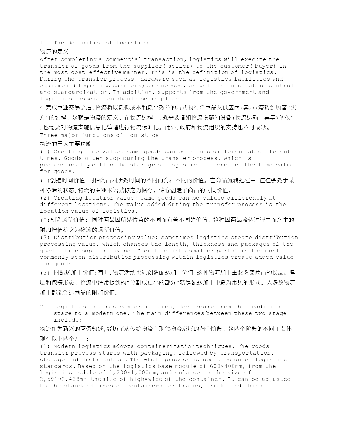 TheDefinitionofLogistics物流的定义Aftercompletingacommercialtransaction,logisticswillexecutethetransferofgoodsfromthesupplier(seller)tothecustomer(buyer)inthemostcost-effectivemanner.Thisisthedefinitionoflogistics.Duringthetransferprocess,hardwaresuchaslogisti