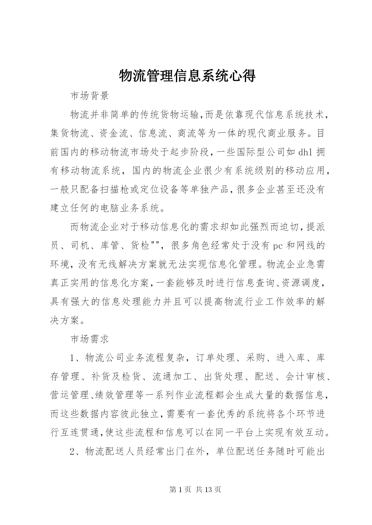 第PAGE\*Arabic\*MERGEFORMAT13页共NUMPAGES\*MERGEFORMAT13页物流管理信息系统心得市场背景物流并非简单的传统货物运输,而是依靠现代信息系统技术,集货物流、资金流、信息流、商流等为一体的现代商业服务。目前国内的移动物流市场处于起步阶段,一些国际型公司如dhl拥有移动物流系统,国内的物流企业很少有系统级别的移动应用,一般只配备扫描枪或定位设备等单独产品,很多企业甚至还没有建立任何的电脑业务系统。而物流企业对于移动信息化的需求却如此强烈而迫切,提派员、司