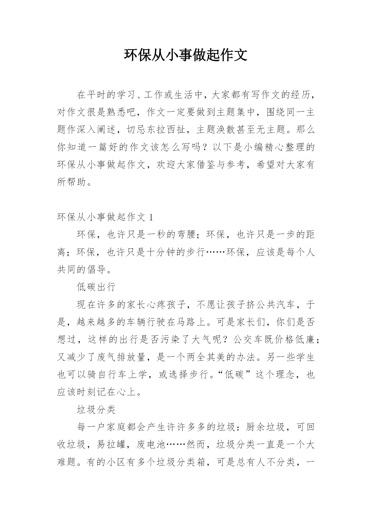 环保从小事做起作文在平时的学习、工作或生活中,大家都有写作文的经历,对作文很是熟悉吧,作文一定要做到主题集中,围绕同一主题作深入阐述,切忌东拉西扯,主题涣散甚至无主题。那么你知道一篇好的作文该怎么写吗?以下是小编精心整理的环保从小事做起作文,欢迎大家借鉴与参考,希望对大家有所帮助。环保从小事做起作文1环保,也许只是一秒的弯腰;环保,也许只是一步的距离;环保,也许只是十分钟的步行……环保,应该是每个人共同的倡导。低碳出行现在许多的家长心疼孩子,不愿让孩子挤公共汽车,于是,越来越多的车辆行驶在马路上。可是家长