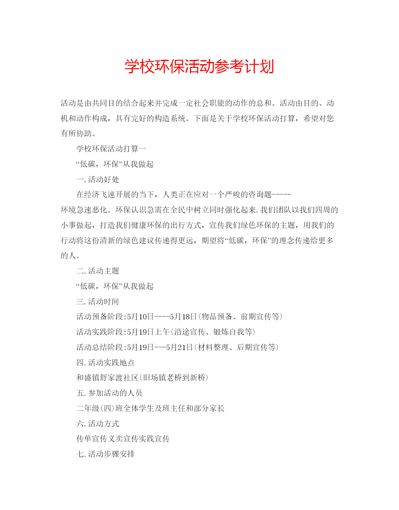 2022学校环保活动参考计划.docx