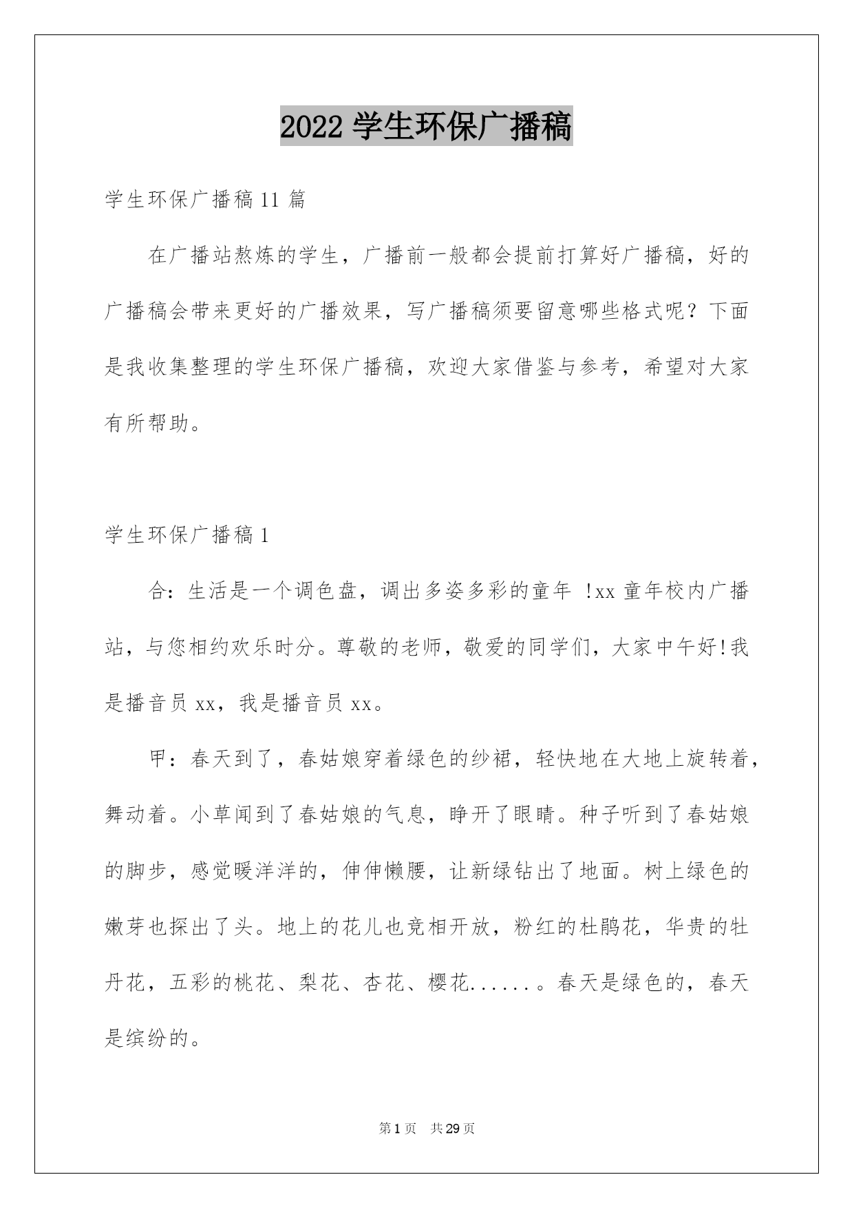 2022学生环保广播稿.docx