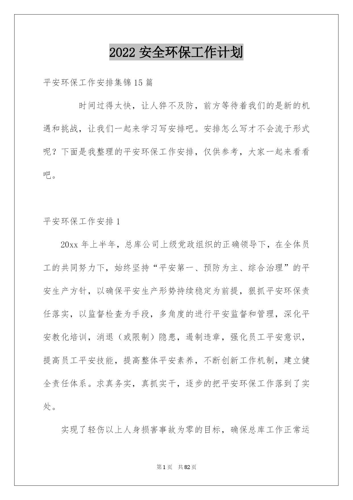 2022安全环保工作计划.docx