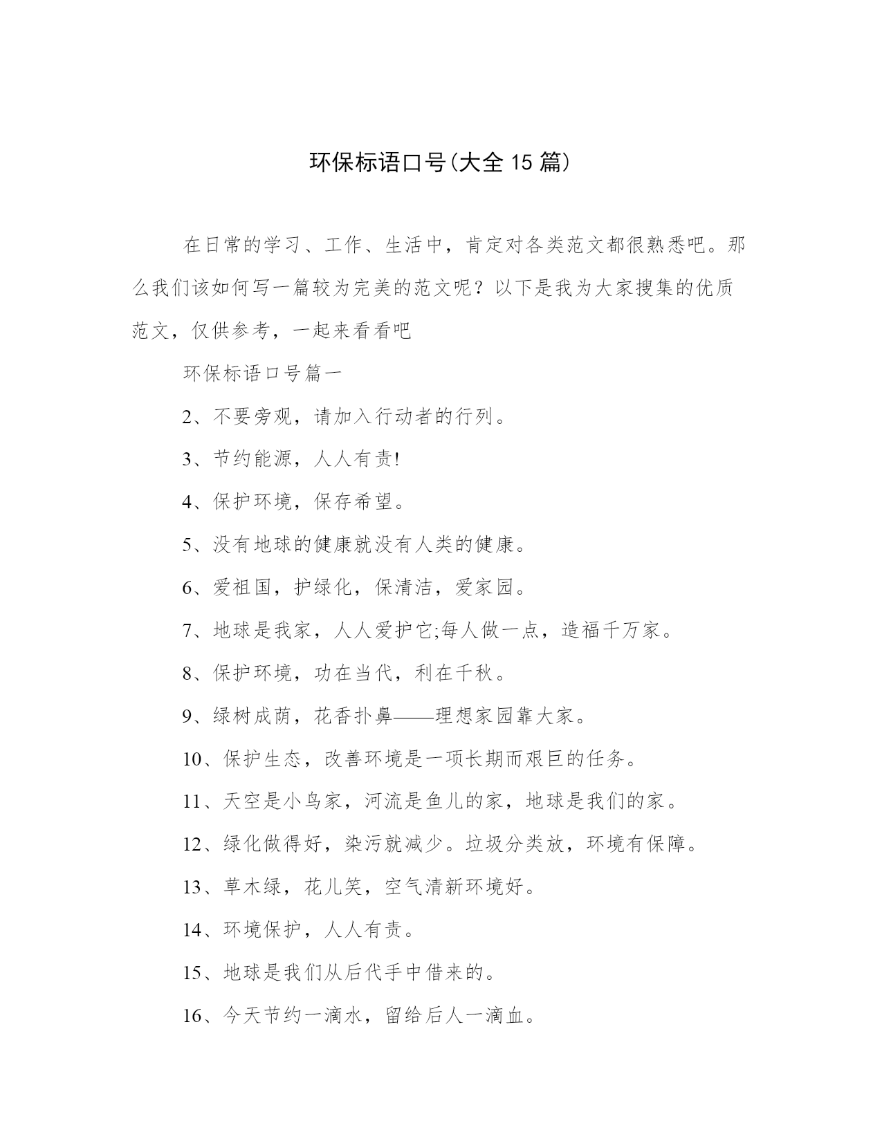 环保标语口号(大全15篇).docx