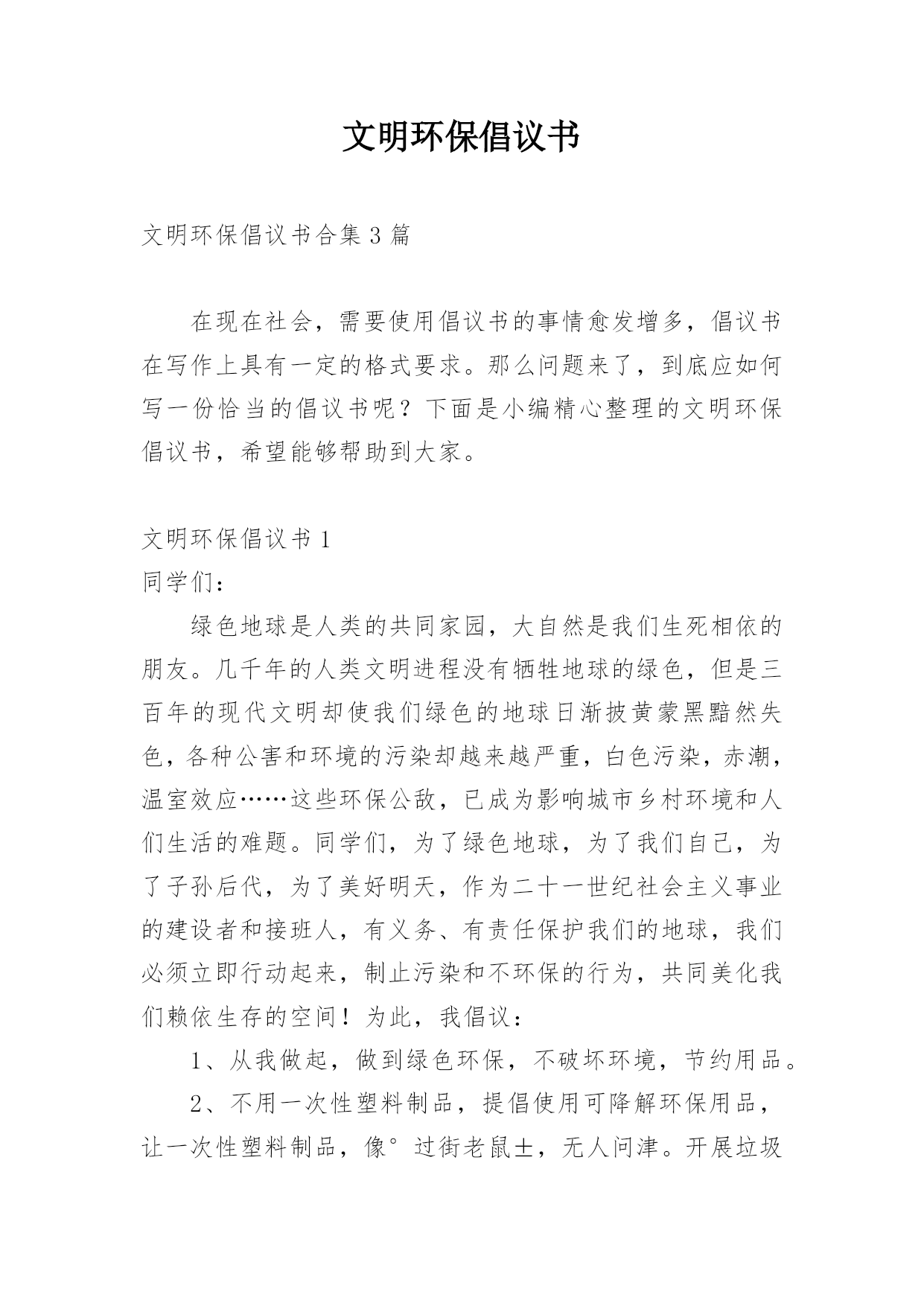 文明环保倡议书.docx