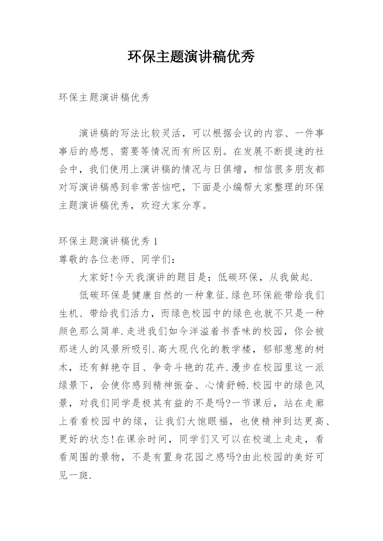 环保主题演讲稿优秀环保主题演讲稿优秀演讲稿的写法比较灵活,可以根据会议的内容、一件事事后的感想、需要等情况而有所区别。在发展不断提速的社会中,我们使用上演讲稿的情况与日俱增,相信很多朋友都对写演讲稿感到非常苦恼吧,下面是小编帮大家整理的环保主题演讲稿优秀,欢迎大家分享。环保主题演讲稿优秀1尊敬的各位老师、同学们:大家好!今天我演讲的题目是:低碳环保,从我做起.低碳环保是健康自然的一种象征.绿色环保能带给我们生机、带给我们活力,而绿色校园中的绿色也就不只是一种颜色那么简单.走进我们如今洋溢着书香味的校园,你