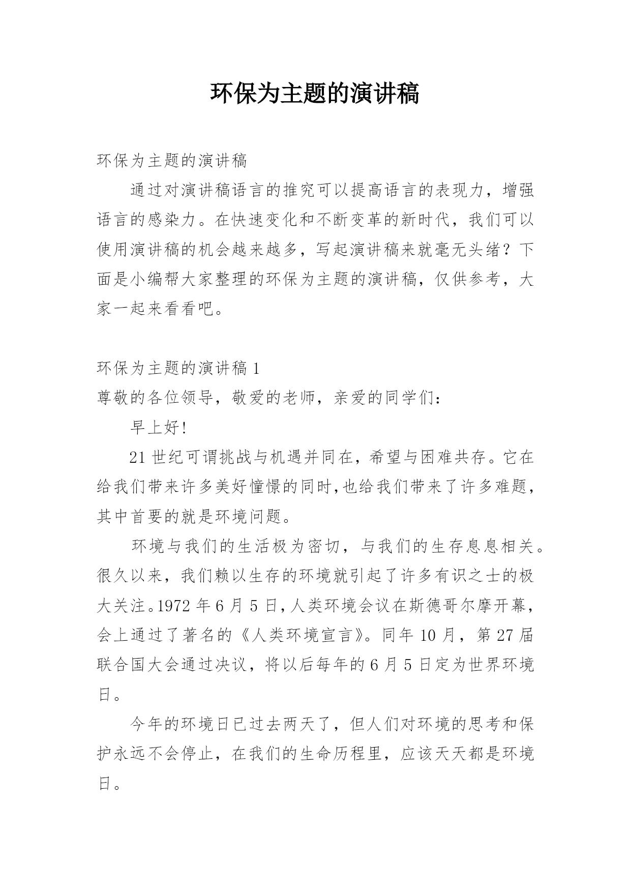 环保为主题的演讲稿.docx