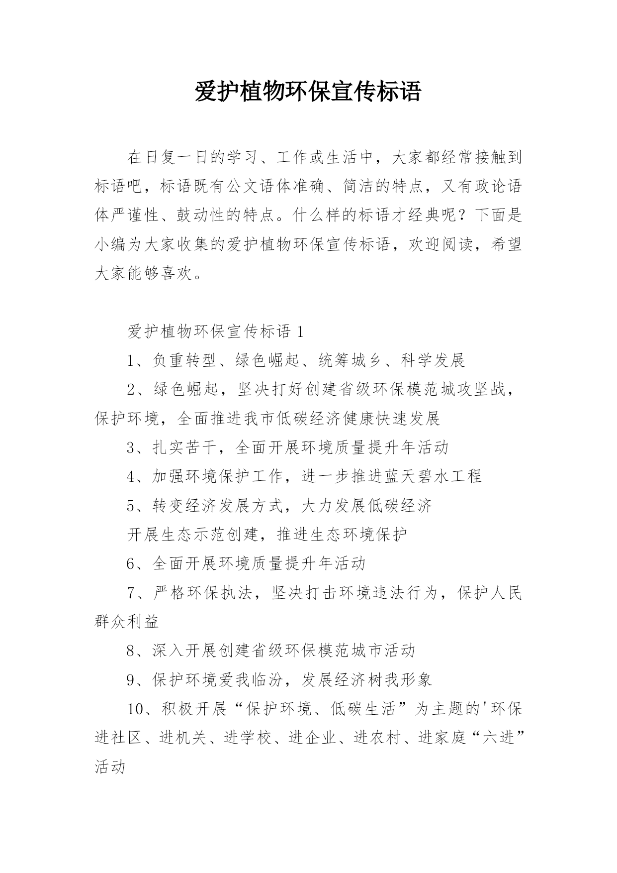 爱护植物环保宣传标语.docx