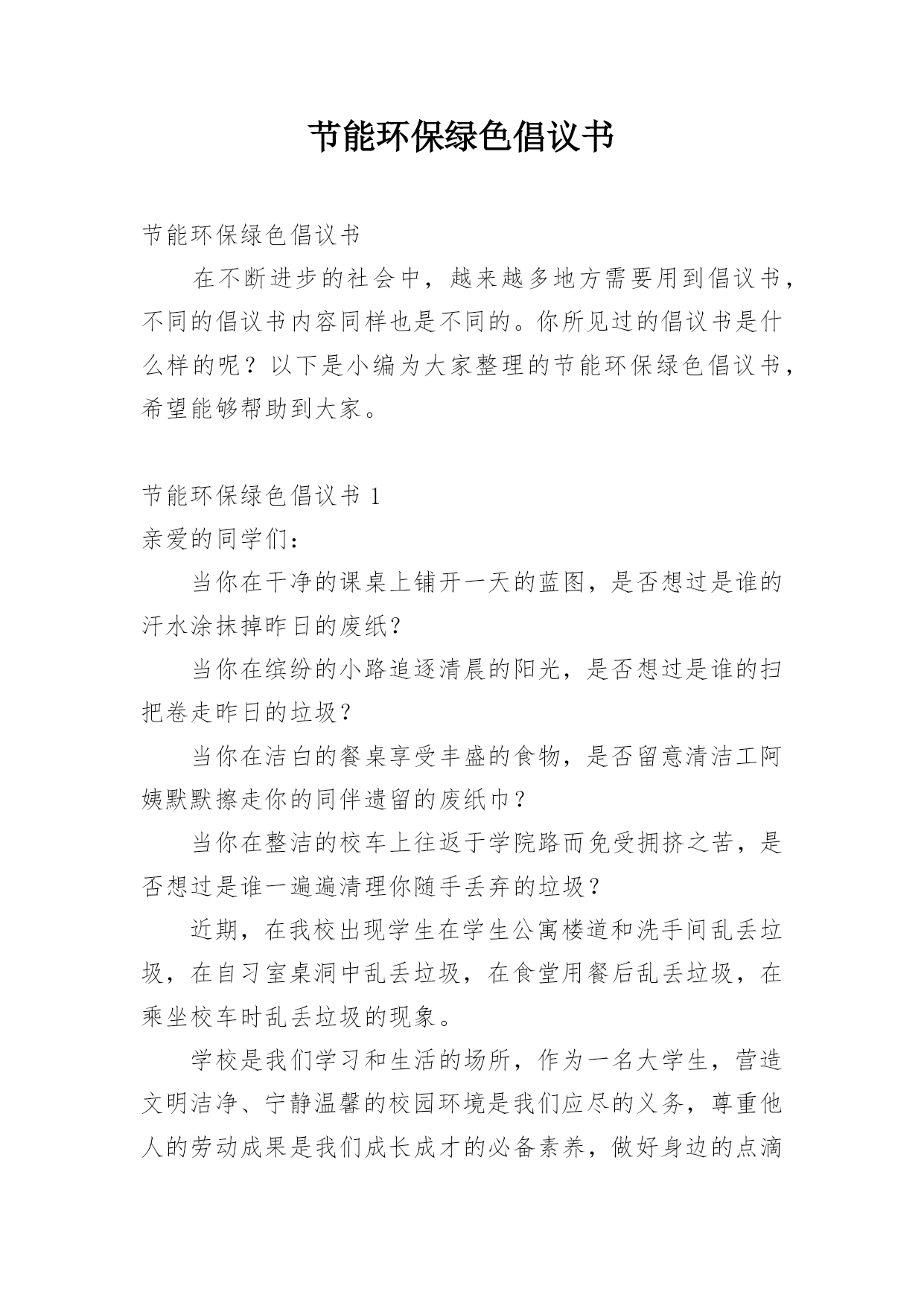 节能环保绿色倡议书节能环保绿色倡议书在不断进步的社会中,越来越多地方需要用到倡议书,不同的倡议书内容同样也是不同的。你所见过的倡议书是什么样的呢?以下是小编为大家整理的节能环保绿色倡议书,希望能够帮助到大家。节能环保绿色倡议书1亲爱的同学们:当你在干净的课桌上铺开一天的蓝图,是否想过是谁的汗水涂抹掉昨日的废纸?当你在缤纷的小路追逐清晨的阳光,是否想过是谁的扫把卷走昨日的垃圾?当你在洁白的餐桌享受丰盛的食物,是否留意清洁工阿姨默默擦走你的同伴遗留的废纸巾?当你在整洁的校车上往返于学院路而免受拥挤之苦,是否想