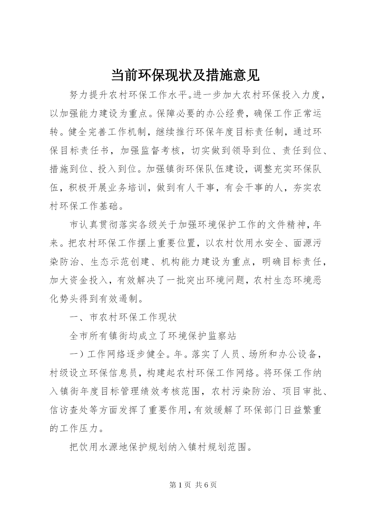 第PAGE\*Arabic\*MERGEFORMAT6页共NUMPAGES\*MERGEFORMAT6页当前环保现状及措施意见努力提升农村环保工作水平。进一步加大农村环保投入力度,以加强能力建设为重点。保障必要的办公经费,确保工作正常运转。健全完善工作机制,继续推行环保年度目标责任制,通过环保目标责任书,加强监督考核,切实做到领导到位、责任到位、措施到位、投入到位。加强镇街环保队伍建设,调整充实环保队伍,积极开展业务培训,做到有人干事,有会干事的人,夯实农村环保工作基础。市认真贯彻落实各级关于