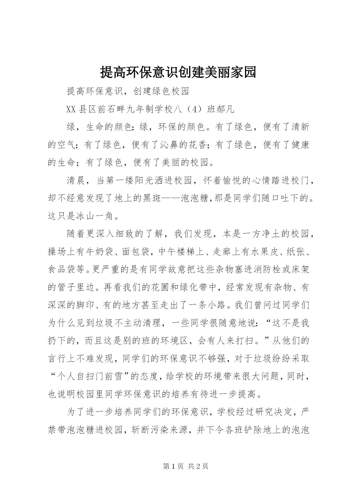 第PAGE\*Arabic\*MERGEFORMAT2页共NUMPAGES\*MERGEFORMAT2页提高环保意识创建美丽家园提高环保意识,创建绿色校园XX县区前石畔九年制学校八(4)班郝凡绿,生命的颜色;绿,环保的颜色。有了绿色,便有了清新的空气;有了绿色,便有了沁鼻的花香;有了绿色,便有了健康的生命;有了绿色,便有了美丽的校园。清晨,当第一缕阳光洒进校园,怀着愉悦的心情踏进校门,却不经意发现了地上的黑斑——泡泡糖,那是同学们随口吐下的。这只是冰山一角。随着更深入细致的了解,我们发现,本是