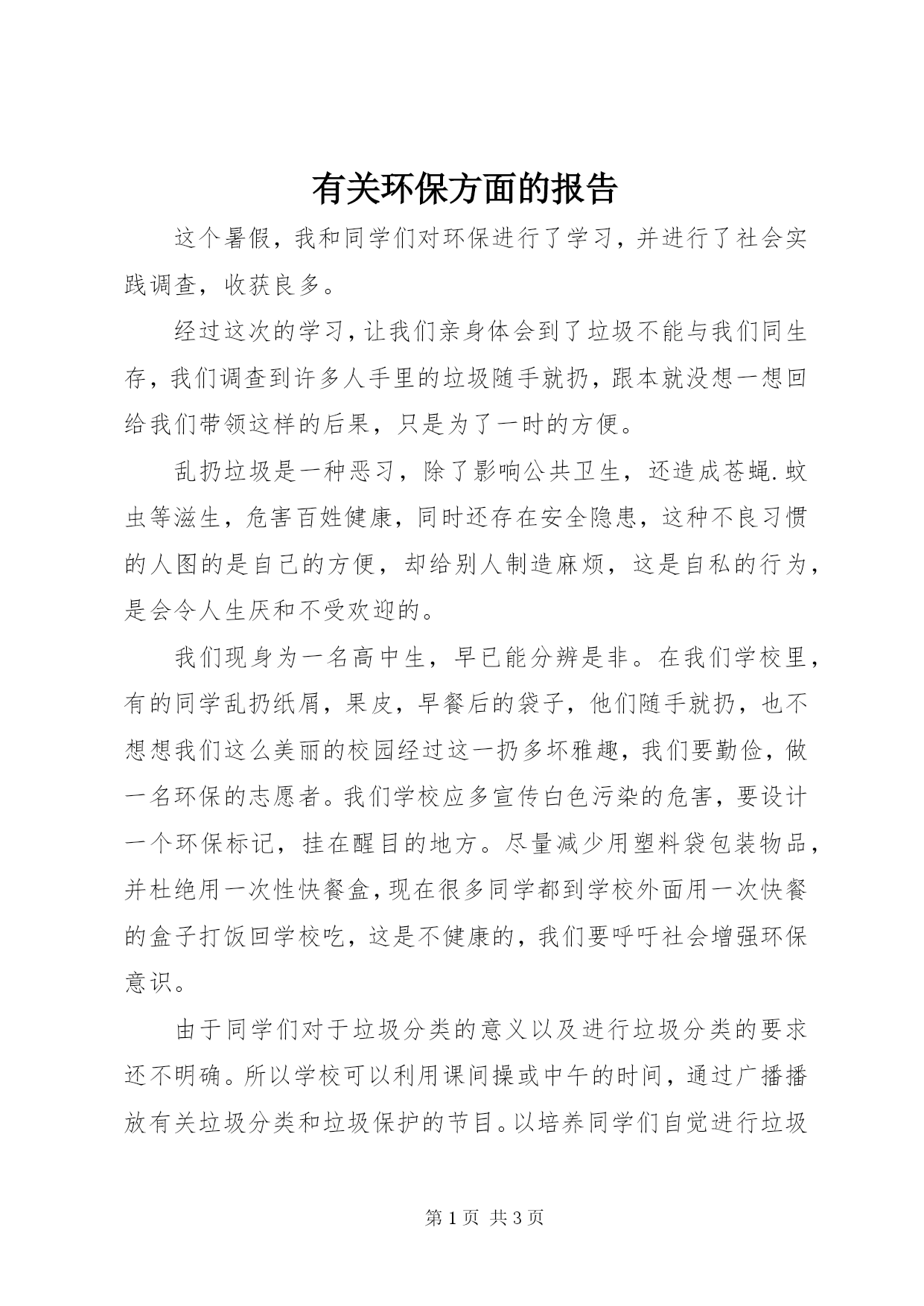 第PAGE\*Arabic\*MERGEFORMAT3页共NUMPAGES\*MERGEFORMAT3页有关环保方面的报告这个暑假,我和同学们对环保进行了学习,并进行了社会实践调查,收获良多。经过这次的学习,让我们亲身体会到了垃圾不能与我们同生存,我们调查到许多人手里的垃圾随手就扔,跟本就没想一想回给我们带领这样的后果,只是为了一时的方便。乱扔垃圾是一种恶习,除了影响公共卫生,还造成苍蝇.蚊虫等滋生,危害百姓健康,同时还存在安全隐患,这种不良习惯的人图的是自己的方便,却给别人制造麻烦,这是自私