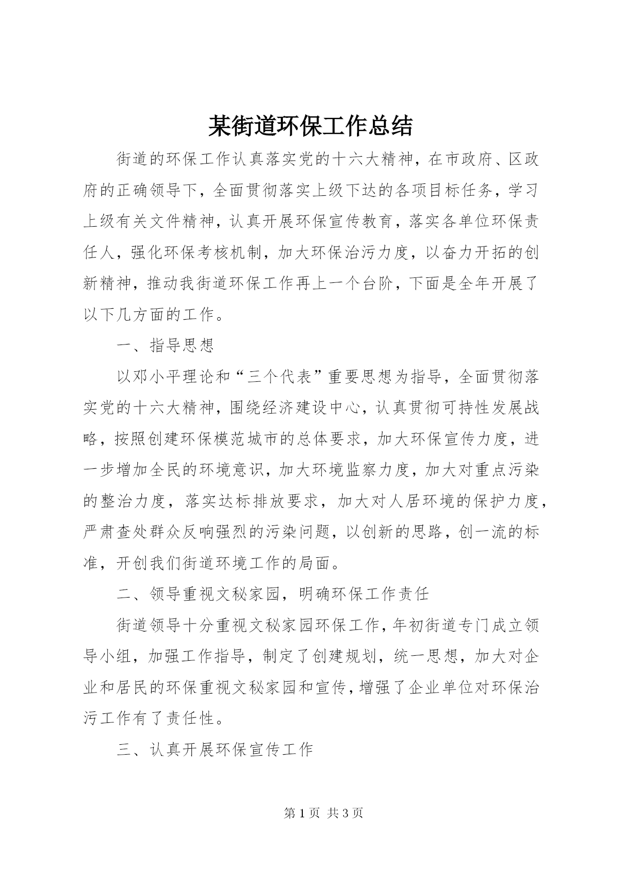 第PAGE\*Arabic\*MERGEFORMAT3页共NUMPAGES\*MERGEFORMAT3页某街道环保工作总结街道的环保工作认真落实党的十六大精神,在市政府、区政府的正确领导下,全面贯彻落实上级下达的各项目标任务,学习上级有关文件精神,认真开展环保宣传教育,落实各单位环保责任人,强化环保考核机制,加大环保治污力度,以奋力开拓的创新精神,推动我街道环保工作再上一个台阶,下面是全年开展了以下几方面的工作。一、指导思想以邓小平理论和“三个代表”重要思想为指导,全面贯彻落实党的十六大精神,
