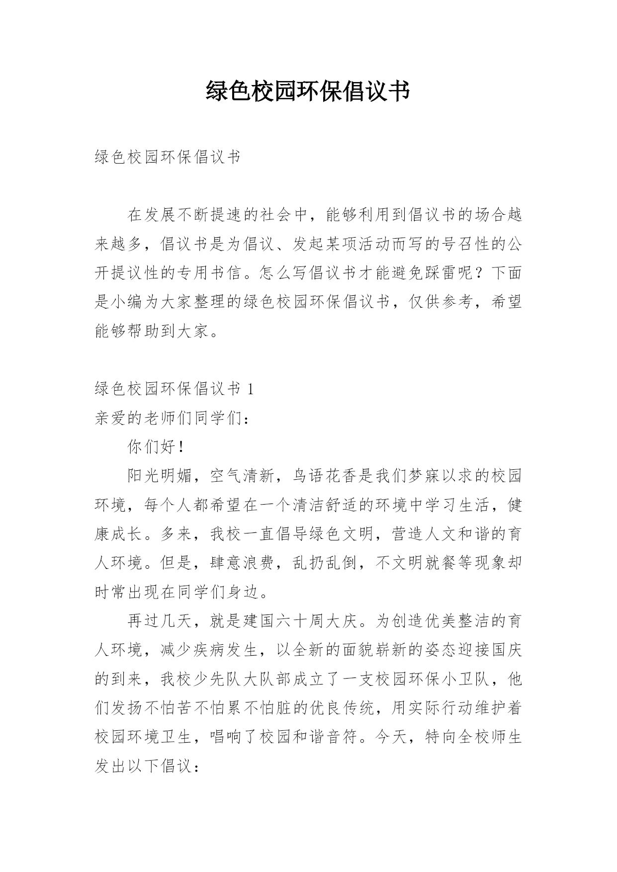 绿色校园环保倡议书.docx