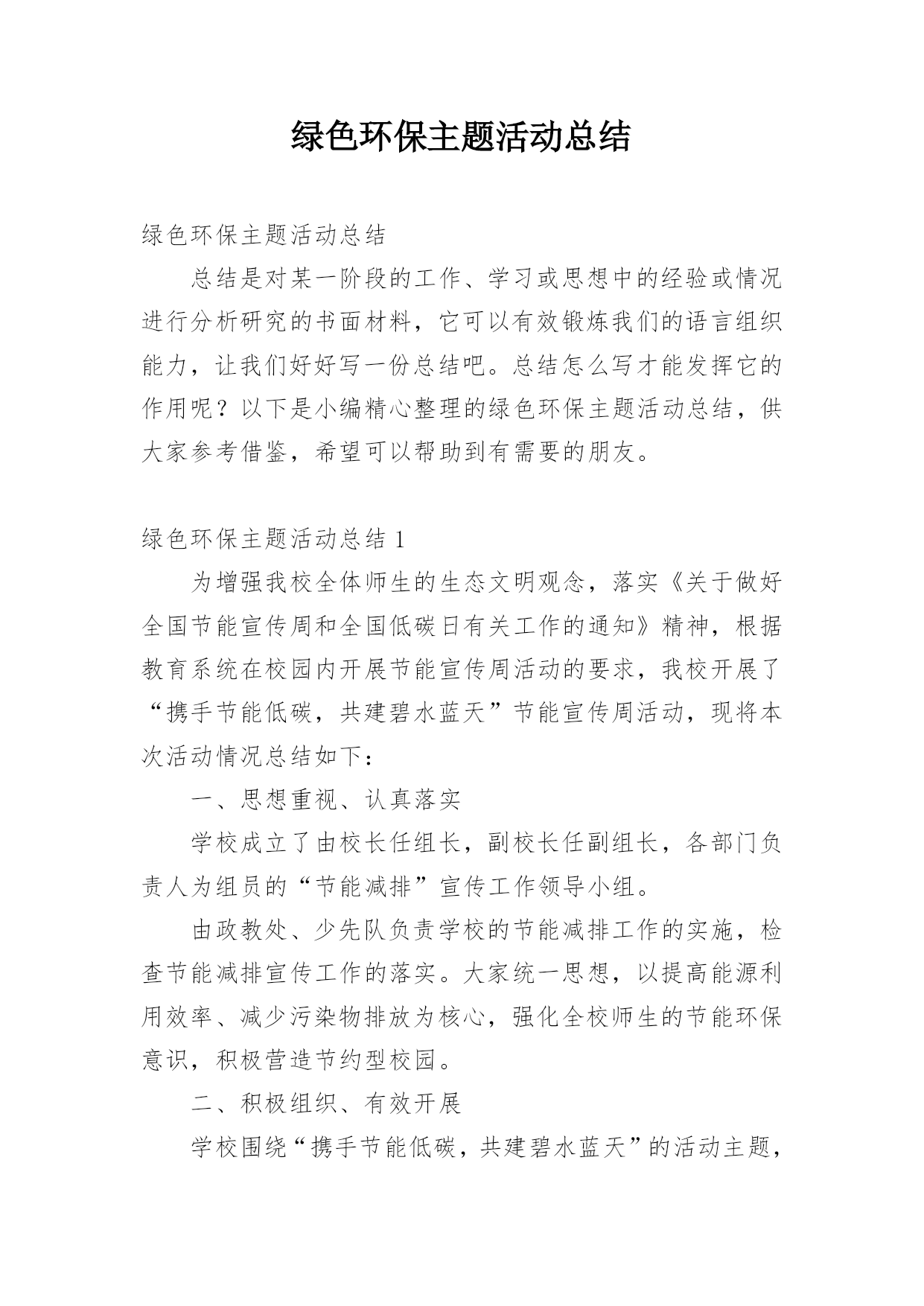 绿色环保主题活动总结.docx