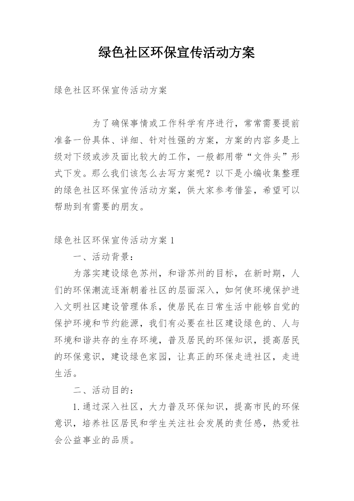 绿色社区环保宣传活动方案绿色社区环保宣传活动方案为了确保事情或工作科学有序进行,常常需要提前准备一份具体、详细、针对性强的方案,方案的内容多是上级对下级或涉及面比较大的工作,一般都用带“文件头”形式下发。那么我们该怎么去写方案呢?以下是小编收集整理的绿色社区环保宣传活动方案,供大家参考借鉴,希望可以帮助到有需要的朋友。绿色社区环保宣传活动方案1一、活动背景:为落实建设绿色苏州,和谐苏州的目标,在新时期,人们的环保潮流逐渐朝着社区的层面深入,如何使环境保护进入文明社区建设管理体系,使居民在日常生活中能够自觉