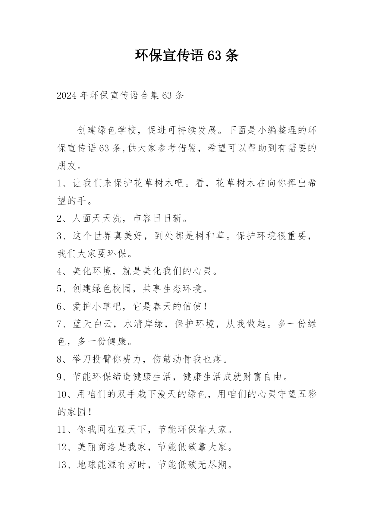 环保宣传语63条.docx