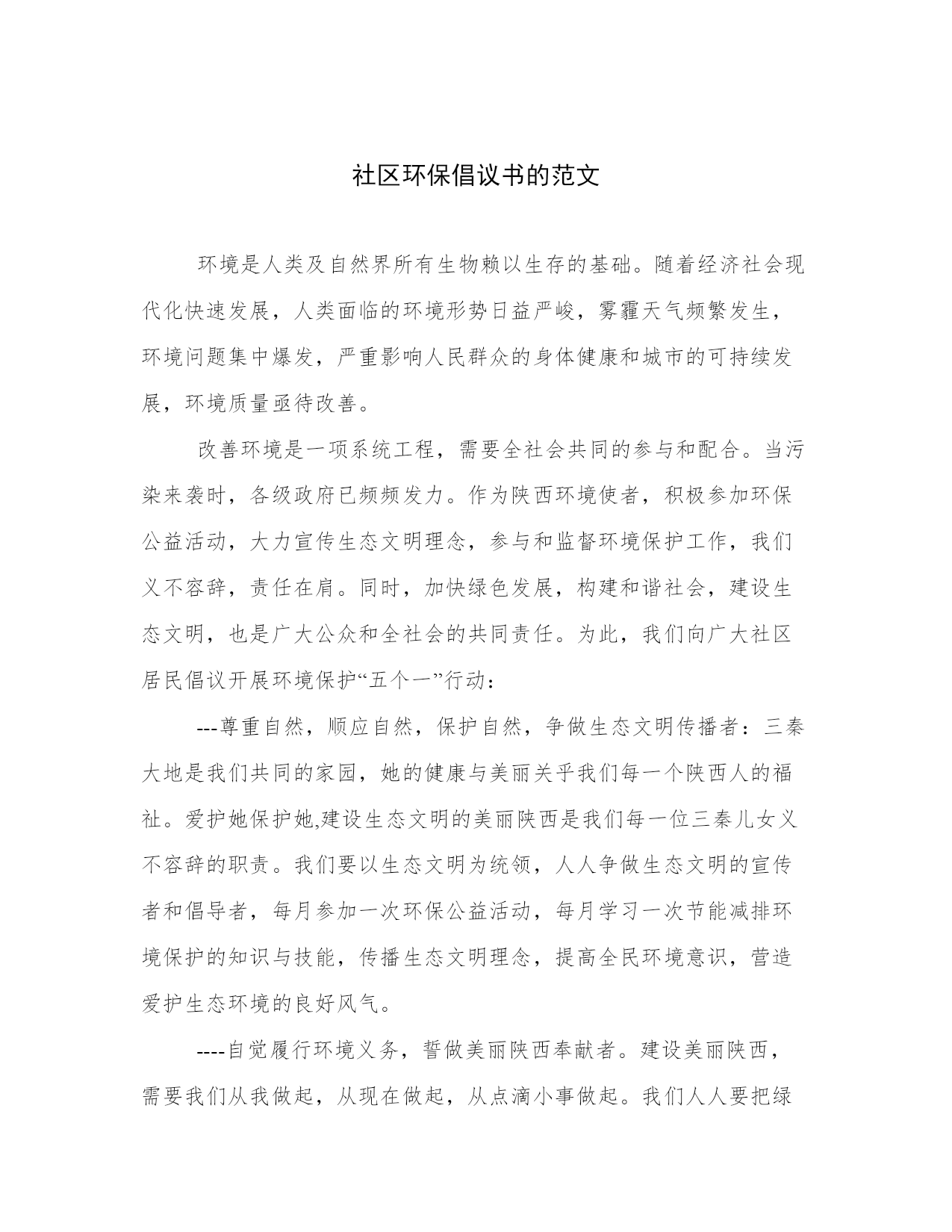 社区环保倡议书的范文.docx