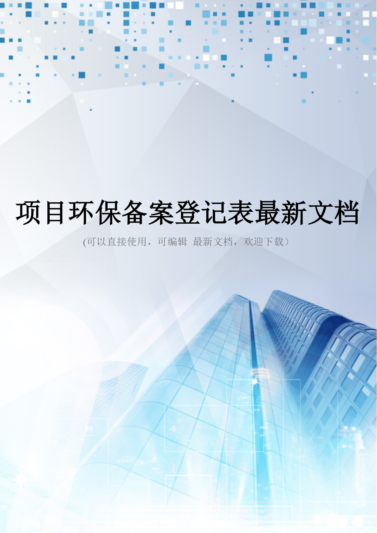 项目环保备案登记表最新文档(可以直接使用,可编辑最新文档,欢迎下载)备案材料2项目环保备案登记表备案编号:企业名称(盖章)企业地址行政区域代码中心位置经度中心位置纬度营业执照号机构代码证号法定代表人联系联系人联系建设项目名称建设地点占地面积(m2)行业类别经营规模项目总投资(万元)环保投资(万元)主要生产或经营状况、项目四至情况1、主体建筑:2、经营内容:,设有,共有员工人。3、作业时间:4、生产工艺:5、经营环境:项目位于,东面是,南面是,西面是,北面是。(在本表后附上项目位置的卫星图、四至图)主要产污