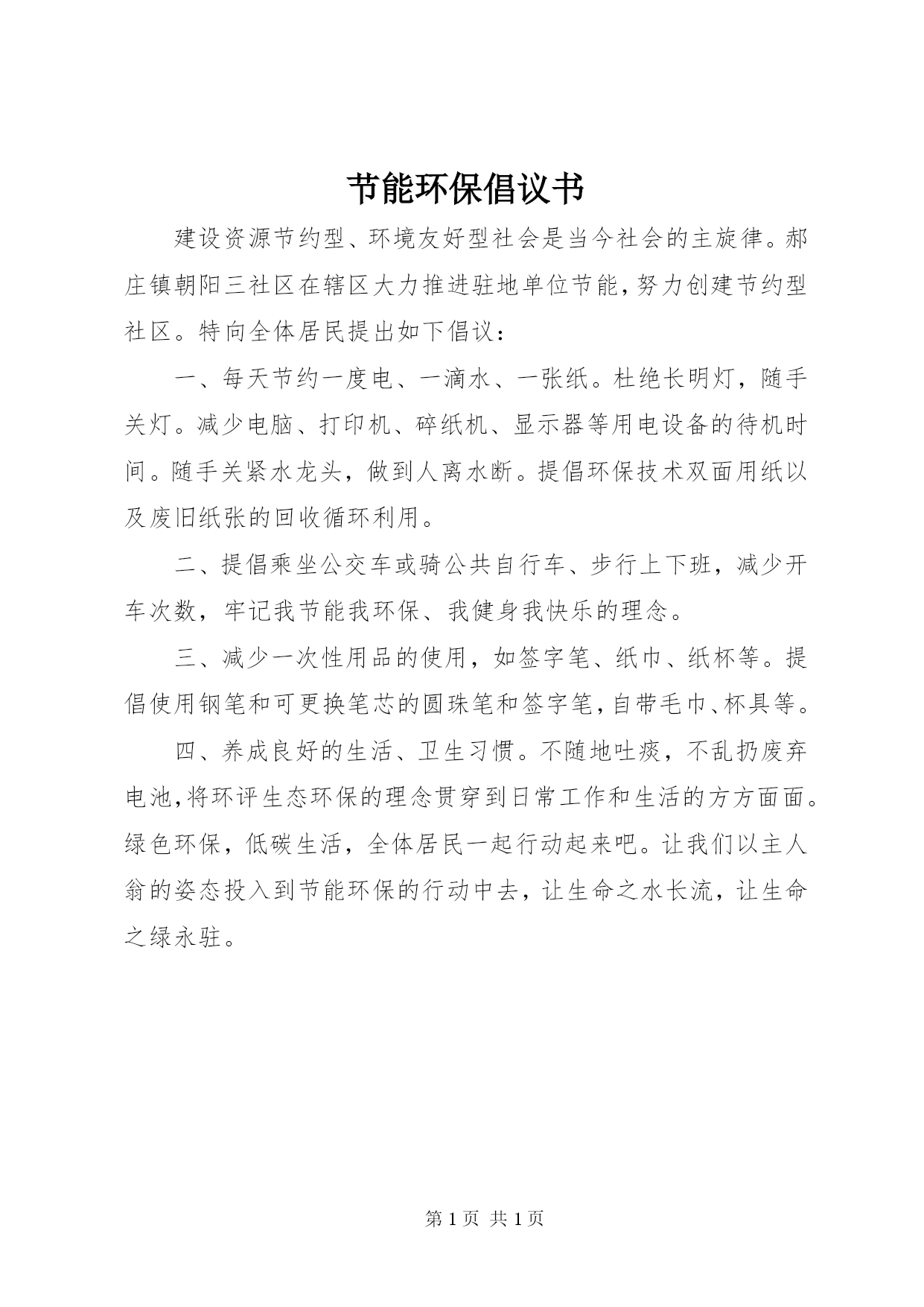 第PAGE\*Arabic\*MERGEFORMAT1页共NUMPAGES\*MERGEFORMAT1页节能环保倡议书建设资源节约型、环境友好型社会是当今社会的主旋律。郝庄镇朝阳三社区在辖区大力推进驻地单位节能,努力创建节约型社区。特向全体居民提出如下倡议:一、每天节约一度电、一滴水、一张纸。杜绝长明灯,随手关灯。减少电脑、打印机、碎纸机、显示器等用电设备的待机时间。随手关紧水龙头,做到人离水断。提倡环保技术双面用纸以及废旧纸张的回收循环利用。二、提倡乘坐公交车或骑公共自行车、步行上下班,减少
