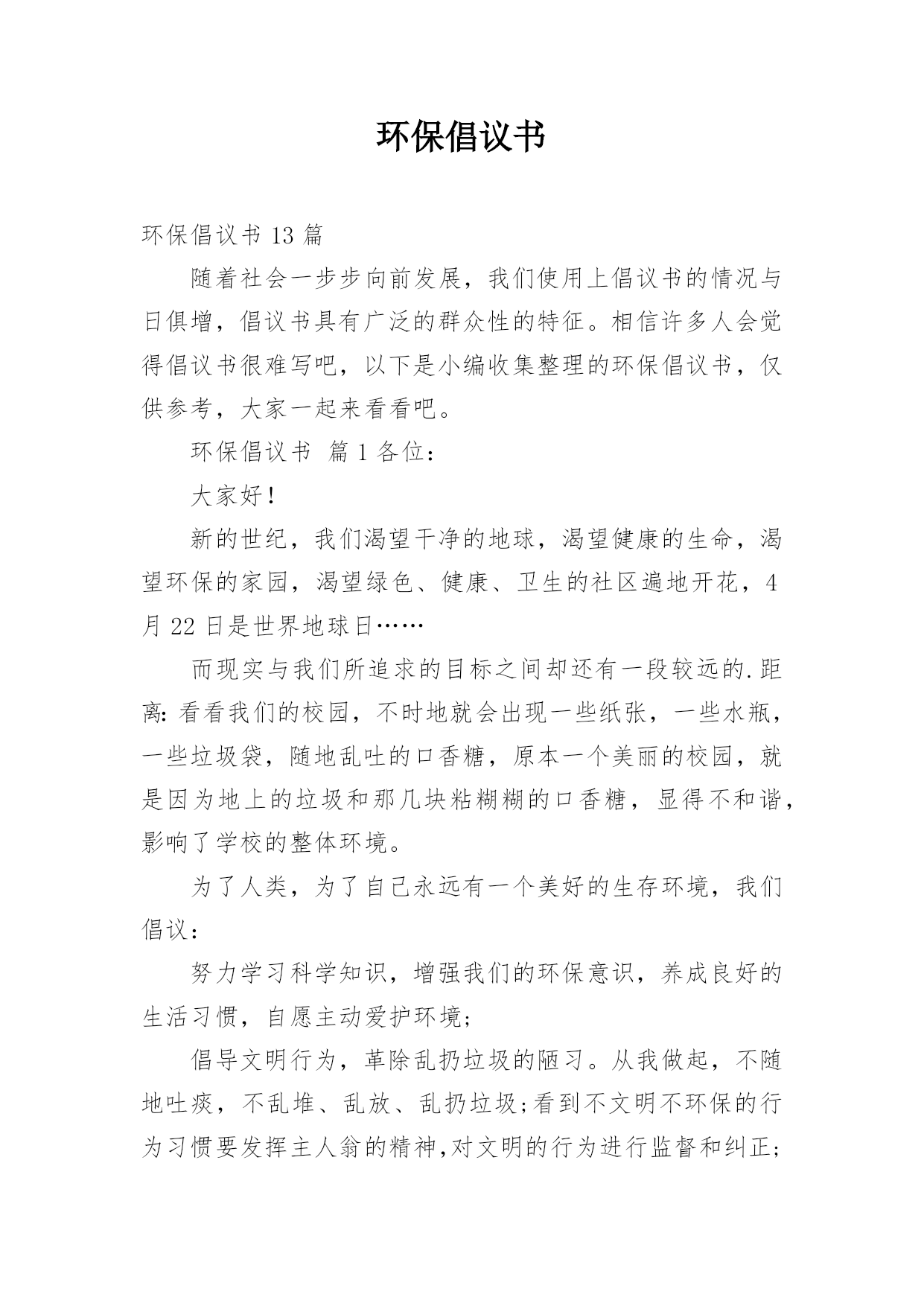 环保倡议书【编辑原创】.docx