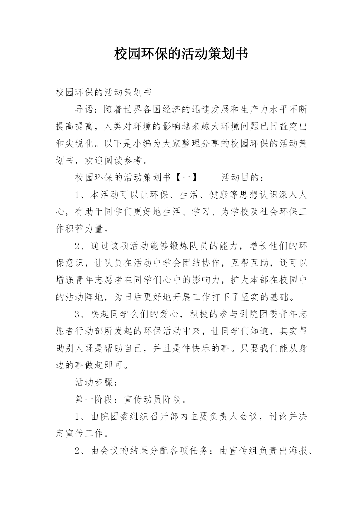 校园环保的活动策划书.docx