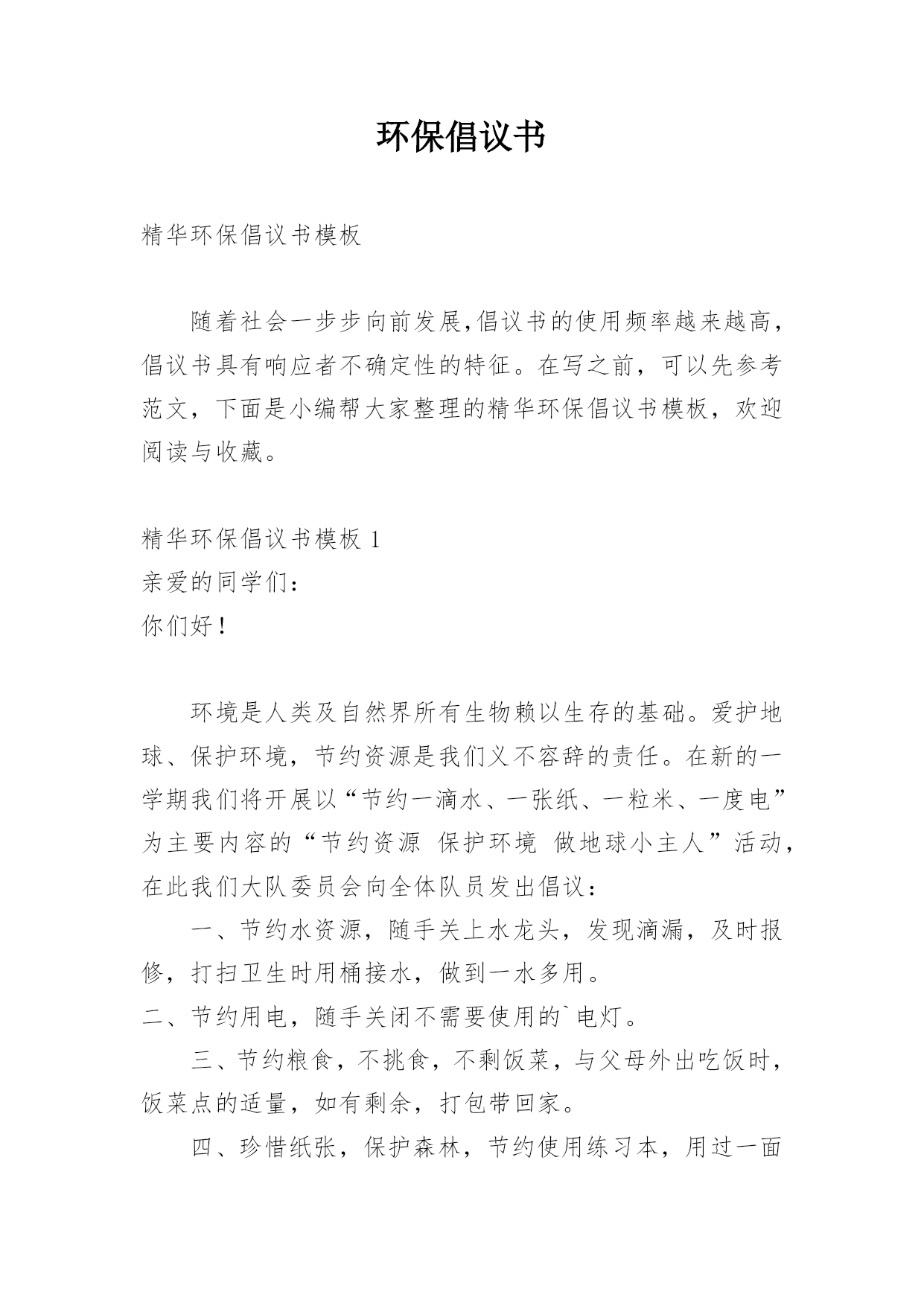 环保倡议书整理版.docx