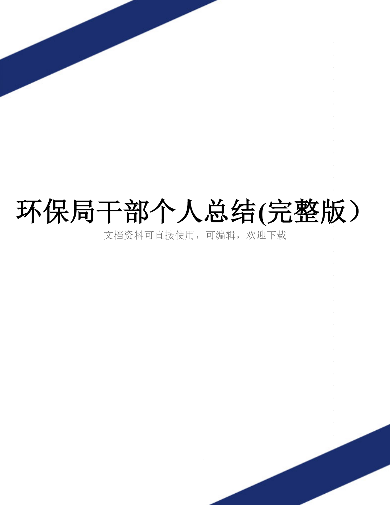 环保局干部个人总结(完整版)文档资料可直接使用,可编辑,欢迎下载环保局干部个人总结范文环保局干部个人工作总结作为一名环保局干部,对于过去一年的工作里有着以下的工作感悟一年来,在局党组的统一领导下和全局职工的关心、支持和帮助下,按照市环境监察支队内设机构职能分工的要求,结合自身实际,围绕年度环保中心工作和环境监察支队的各项任务,认真履职,抓好落实,较好地完成了各项工作任务。一年来,在局党组的统一领导下和全局职工的关心、支持和帮助下,按照市环境监察支队内设机构职能分工的要求,结合自身实际,围绕年度环保中心工作