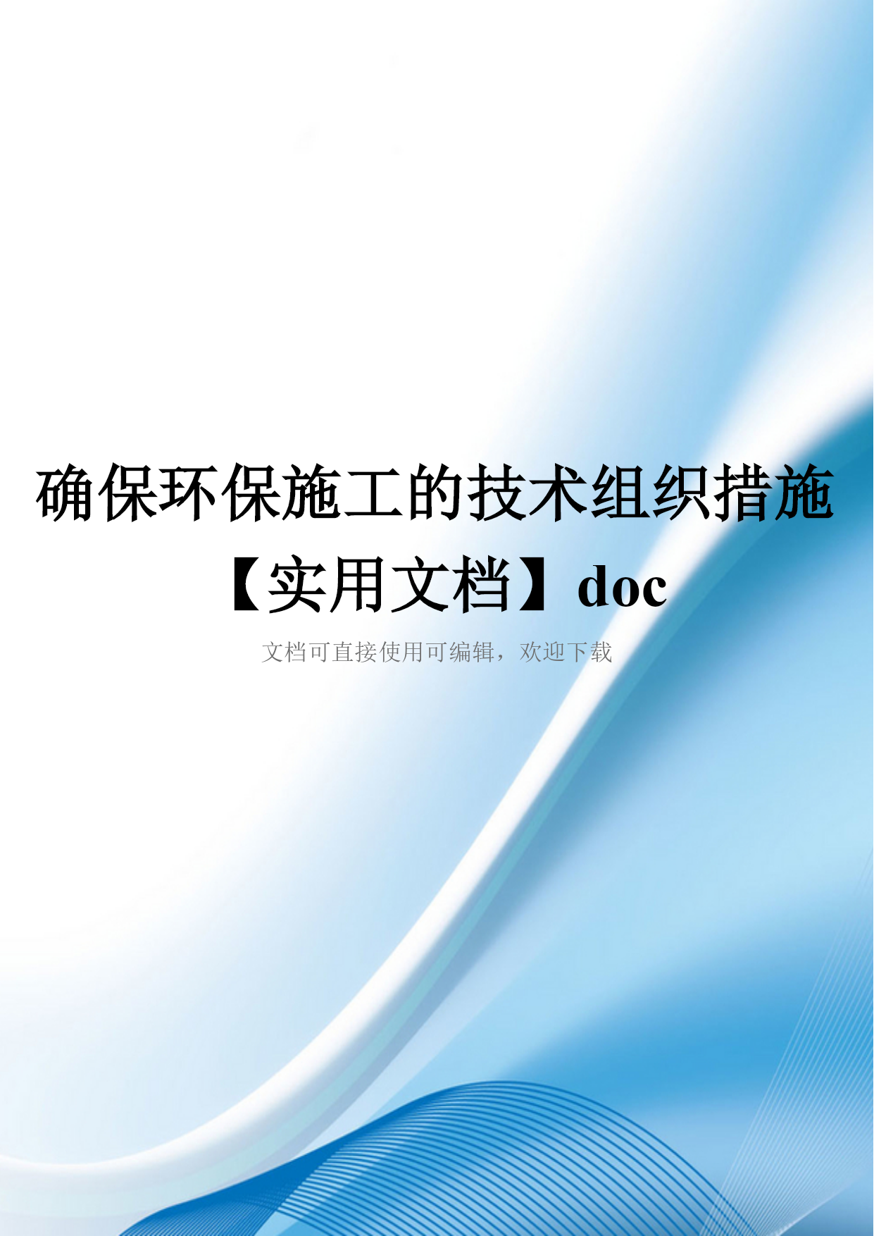 确保环保施工的技术组织措施【实用文档】doc文档可直接使用可编辑,欢迎下载确保环保施工的技术组织措施根据施工现场本身的工作环境特点,为保证施工现场及周边的环境整洁,同时不对其他相邻单位的施工造成影响,我公司将认真分析影响现场环境的因素,针对影响因素制定有效的环境保护方案,最大限度的降低工地的扬尘、噪音何废弃物排放等各种污染。一、环境保护目标施工污染环境事故发生率为零;尽量避免现场施工及材料机械设备运输造成环境污染。二、环保达标管理方案1、噪音排放控制因施工时间技术方面的要求致使噪音超标时,必须遵循有关部门