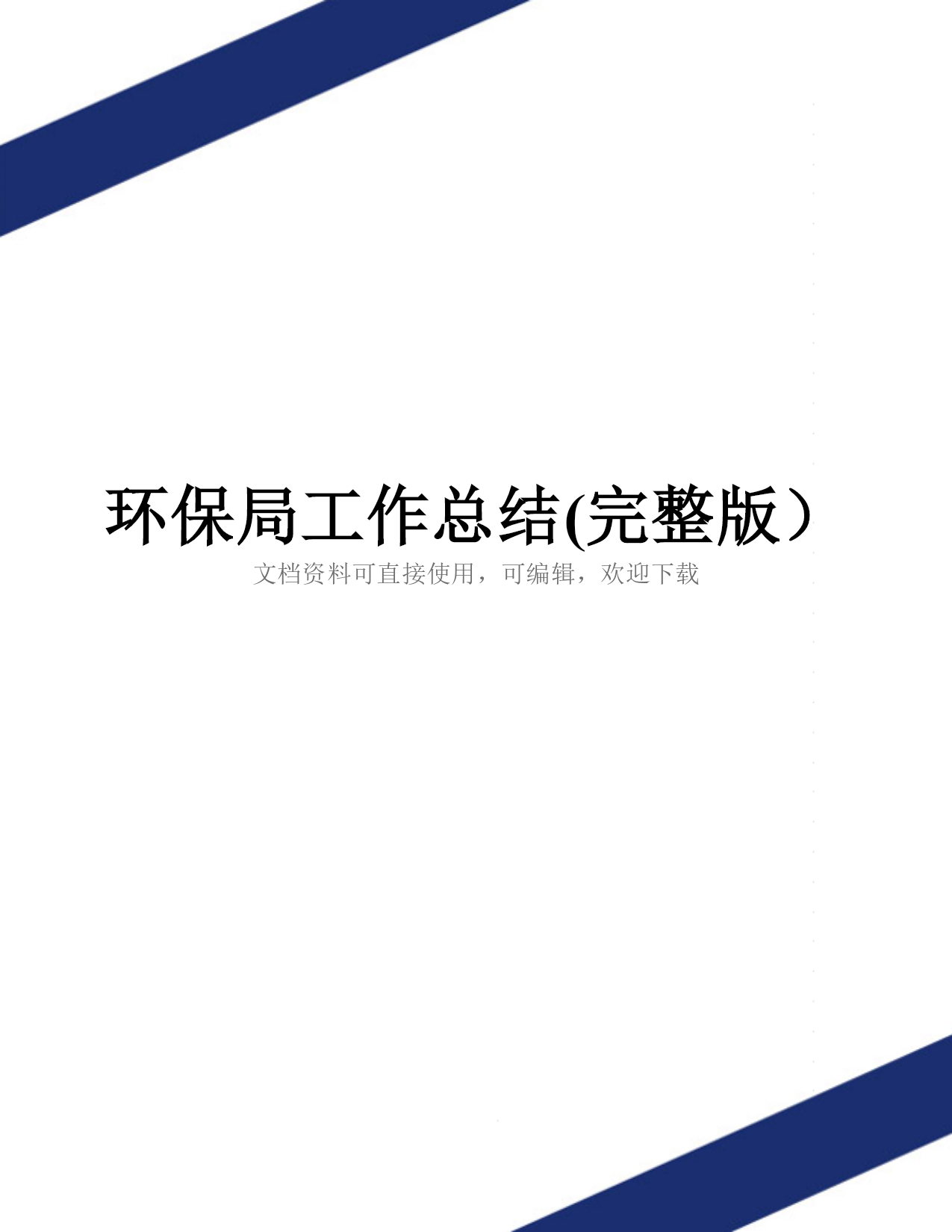 环保局工作总结(完整版)文档资料可直接使用,可编辑,欢迎下载环保局工作总结半年来,我局在县委、县政府的正确领导以及市环保局的业务指导下,紧紧围绕全市环保工作会议和全县经济工作会议精神,以科学发展观为统领,积极谋划,精心布局,以务实的作风,扎实工作,促使各项工作取得了明显的成效。截止___月底,我县环境空气质量二级及好于二级以上天数达到___天,比去年同期增加了___天。全县so2减排___吨,完成任务的___%,cod减排___吨,完成任务的___%,氮氧化物减排___吨,完成任务的___%,氨氮减排__