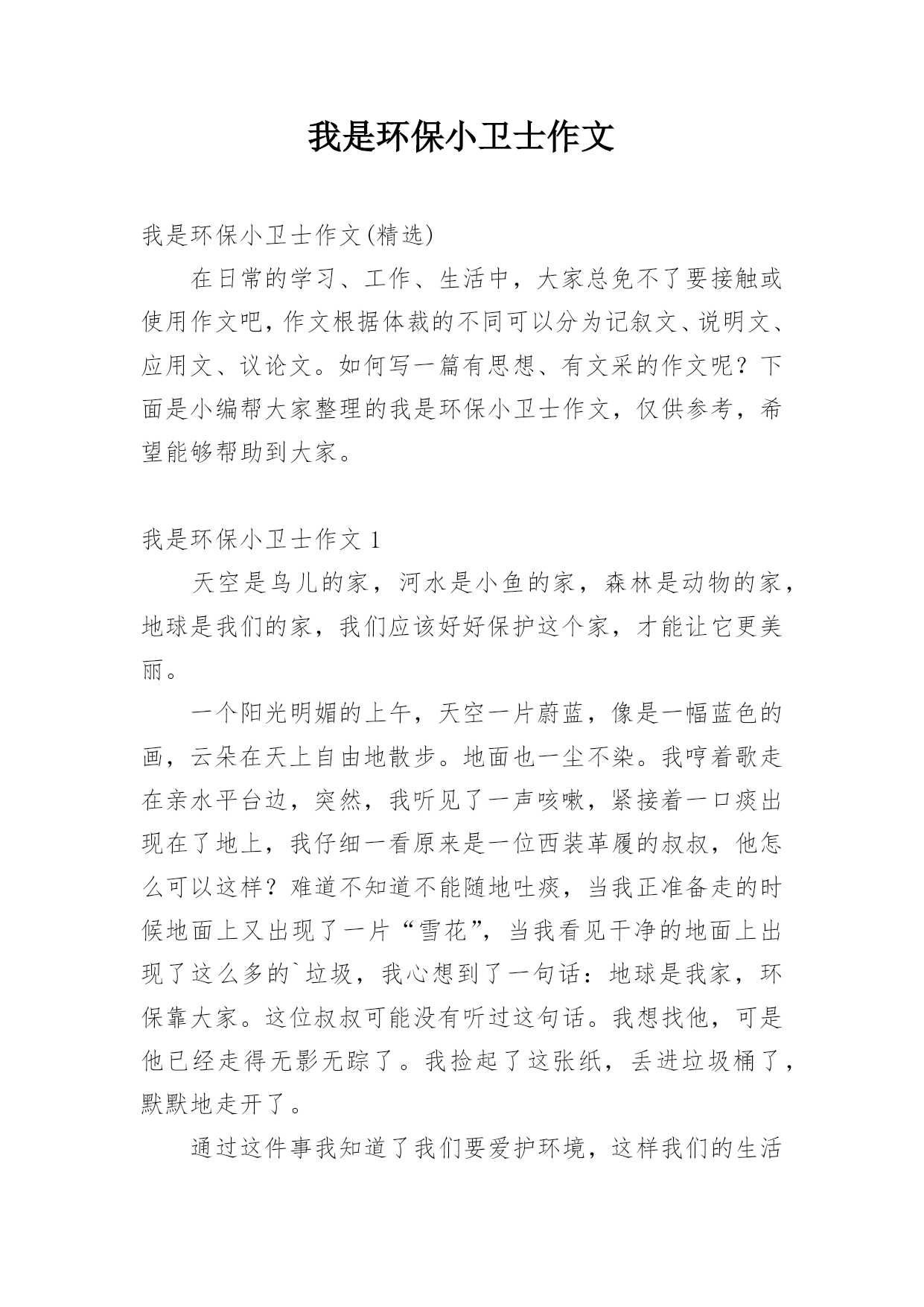 我是环保小卫士作文精选.docx