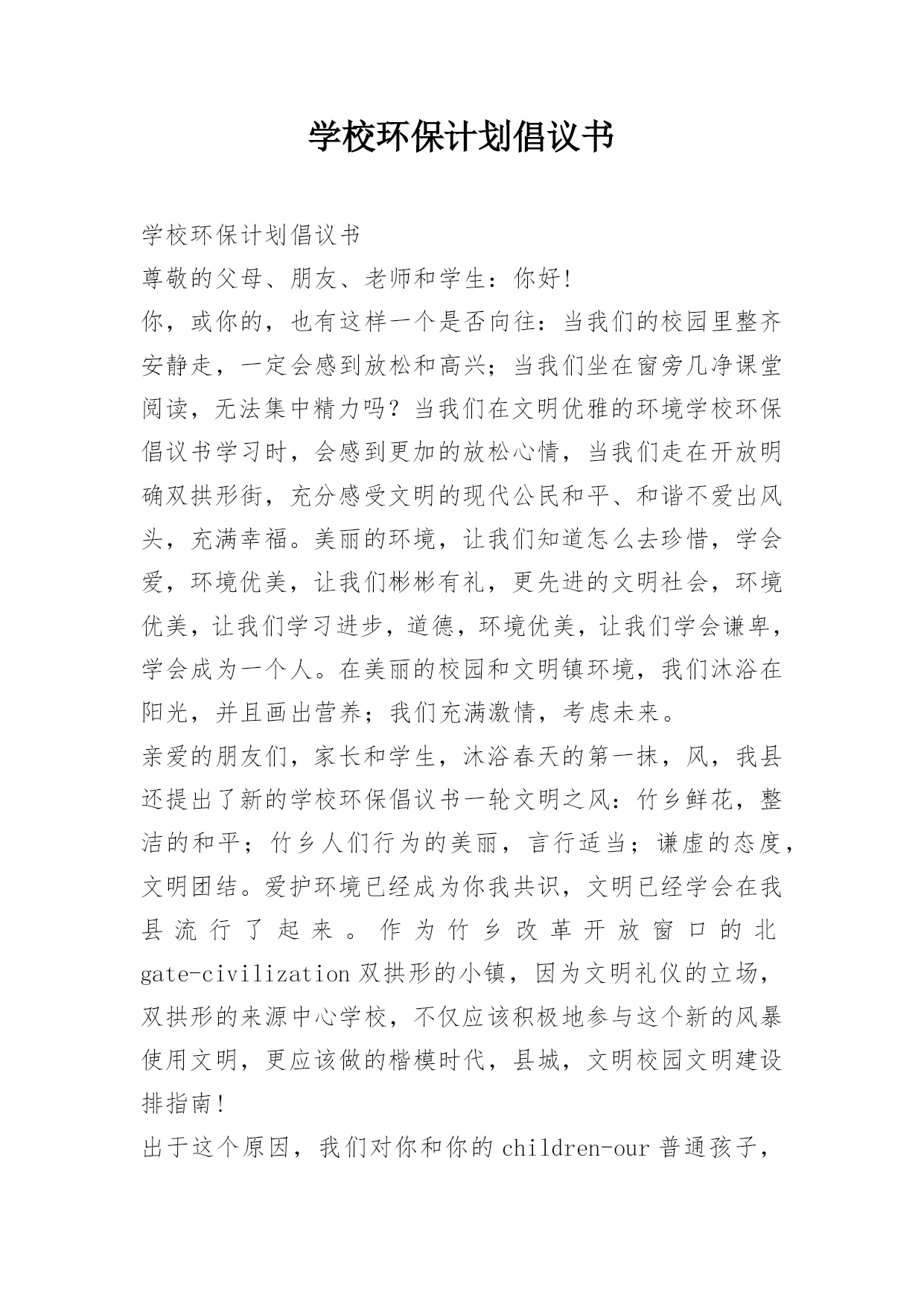 学校环保计划倡议书.docx