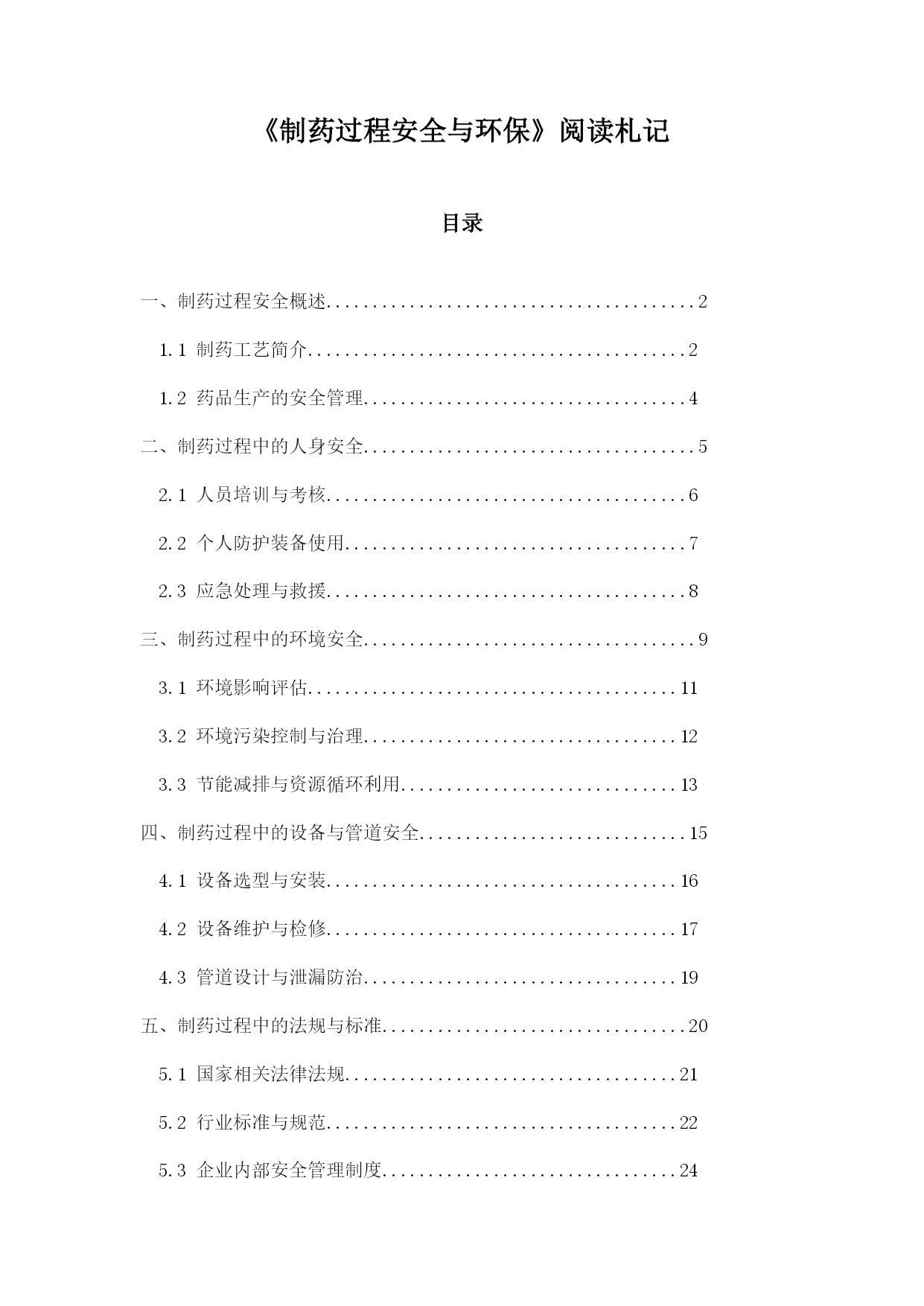 《制药过程安全与环保》阅读札记目录一、制药过程安全概述........................................21.1制药工艺简介.........................................21.2药品生产的安全管理...................................4二、制药过程中的人身安全....................................52.1人员培训与考核.............................