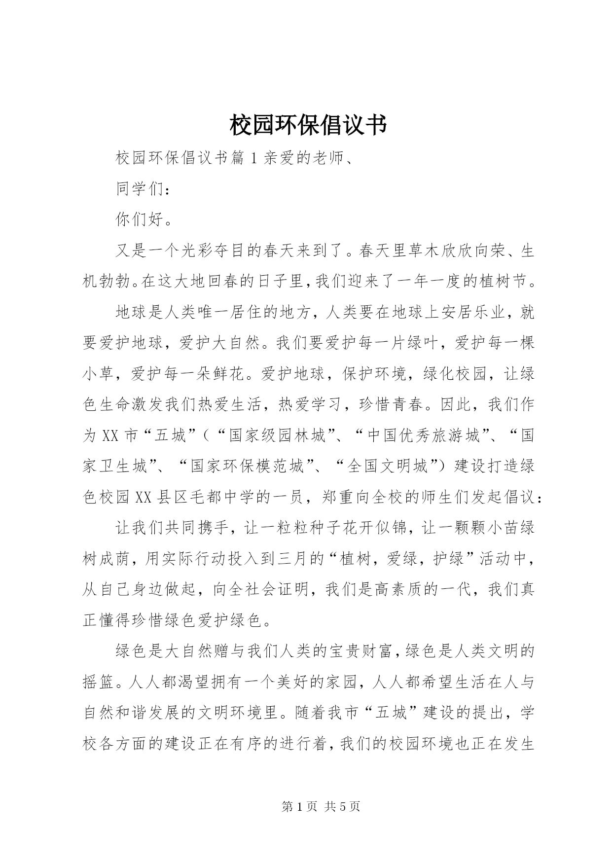 第PAGE\*Arabic\*MERGEFORMAT5页共NUMPAGES\*MERGEFORMAT5页校园环保倡议书校园环保倡议书篇1亲爱的老师、同学们:你们好。又是一个光彩夺目的春天来到了。春天里草木欣欣向荣、生机勃勃。在这大地回春的日子里,我们迎来了一年一度的植树节。地球是人类唯一居住的地方,人类要在地球上安居乐业,就要爱护地球,爱护大自然。我们要爱护每一片绿叶,爱护每一棵小草,爱护每一朵鲜花。爱护地球,保护环境,绿化校园,让绿色生命激发我们热爱生活,热爱学习,珍惜青春。因此,我们作为X