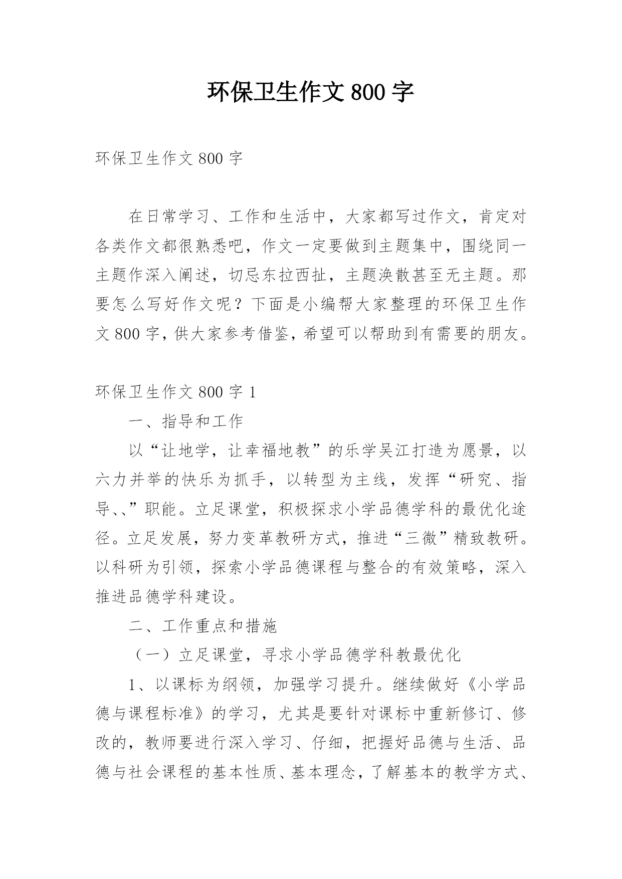 环保卫生作文800字环保卫生作文800字在日常学习、工作和生活中,大家都写过作文,肯定对各类作文都很熟悉吧,作文一定要做到主题集中,围绕同一主题作深入阐述,切忌东拉西扯,主题涣散甚至无主题。那要怎么写好作文呢?下面是小编帮大家整理的环保卫生作文800字,供大家参考借鉴,希望可以帮助到有需要的朋友。环保卫生作文800字1一、指导和工作以“让地学,让幸福地教”的乐学吴江打造为愿景,以六力并举的快乐为抓手,以转型为主线,发挥“研究、指导、、”职能。立足课堂,积极探求小学品德学科的最优化途径。立足发展,努力变革教