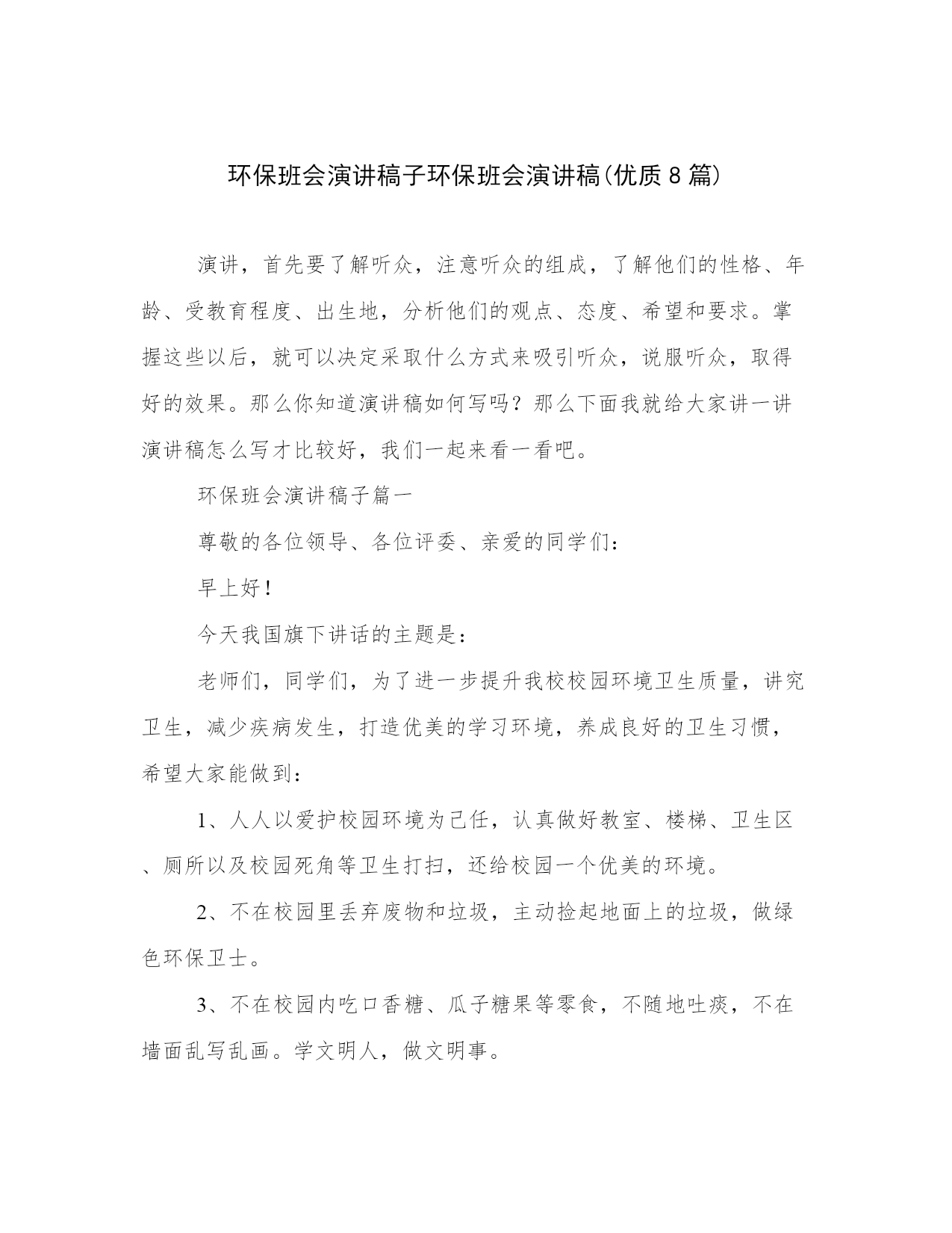 环保班会演讲稿子环保班会演讲稿(优质8篇).docx