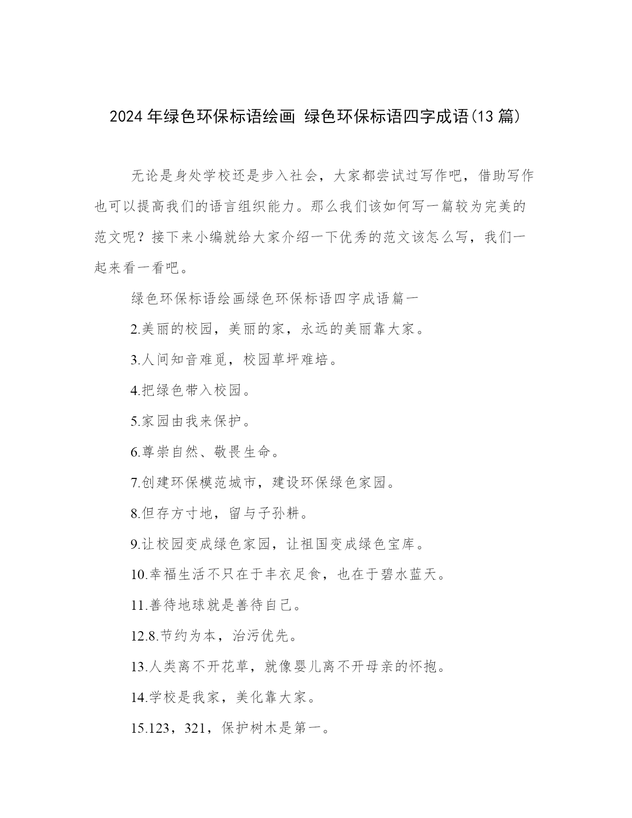 2024年绿色环保标语绘画 绿色环保标语四字成语(13篇).docx