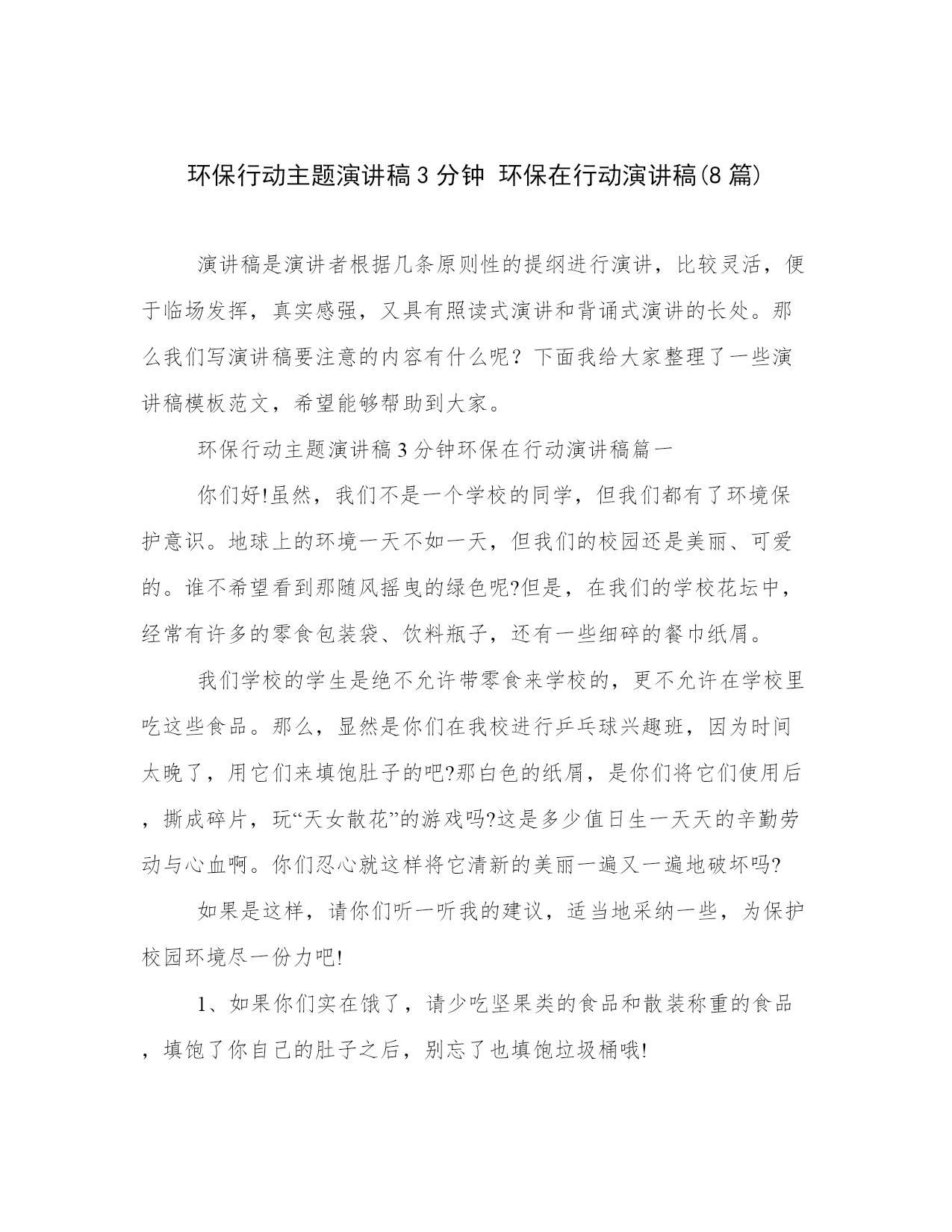 环保行动主题演讲稿3分钟 环保在行动演讲稿(8篇).docx