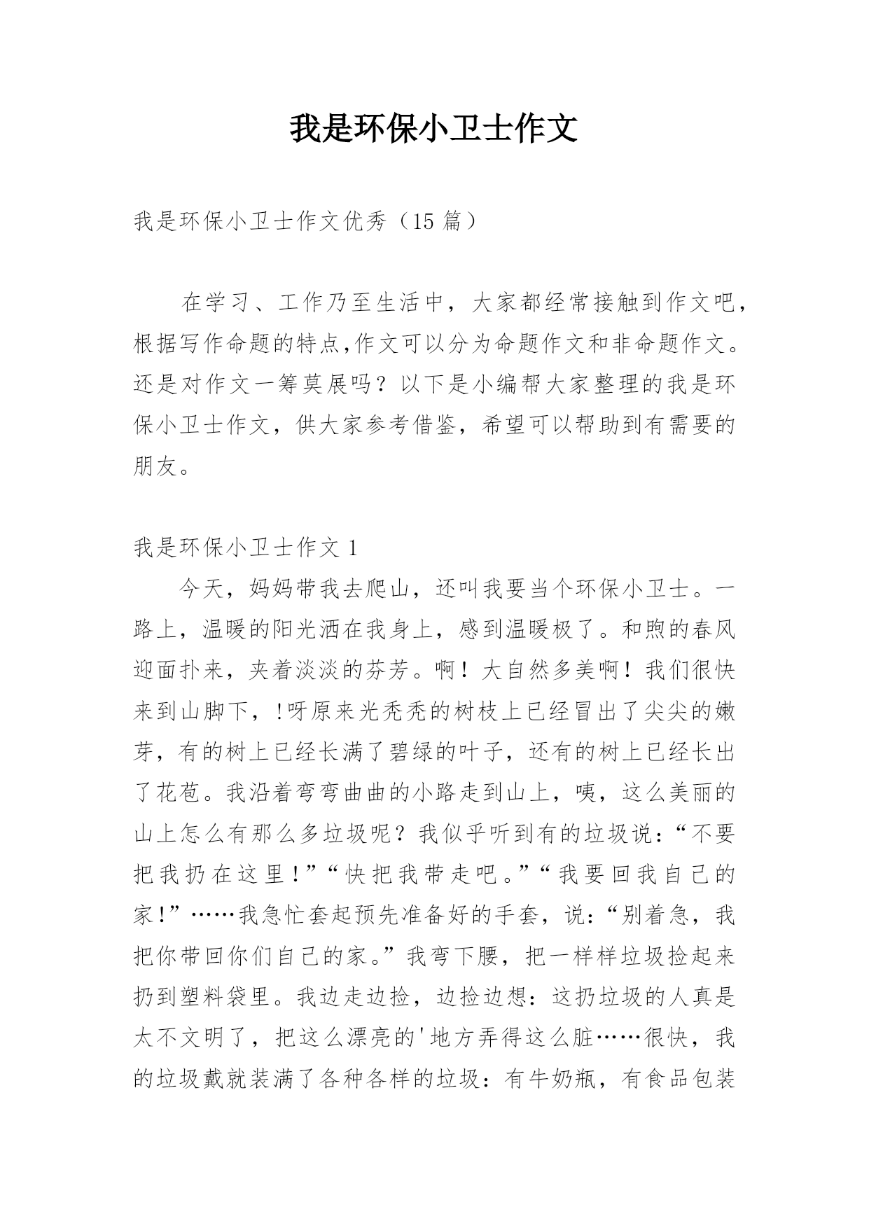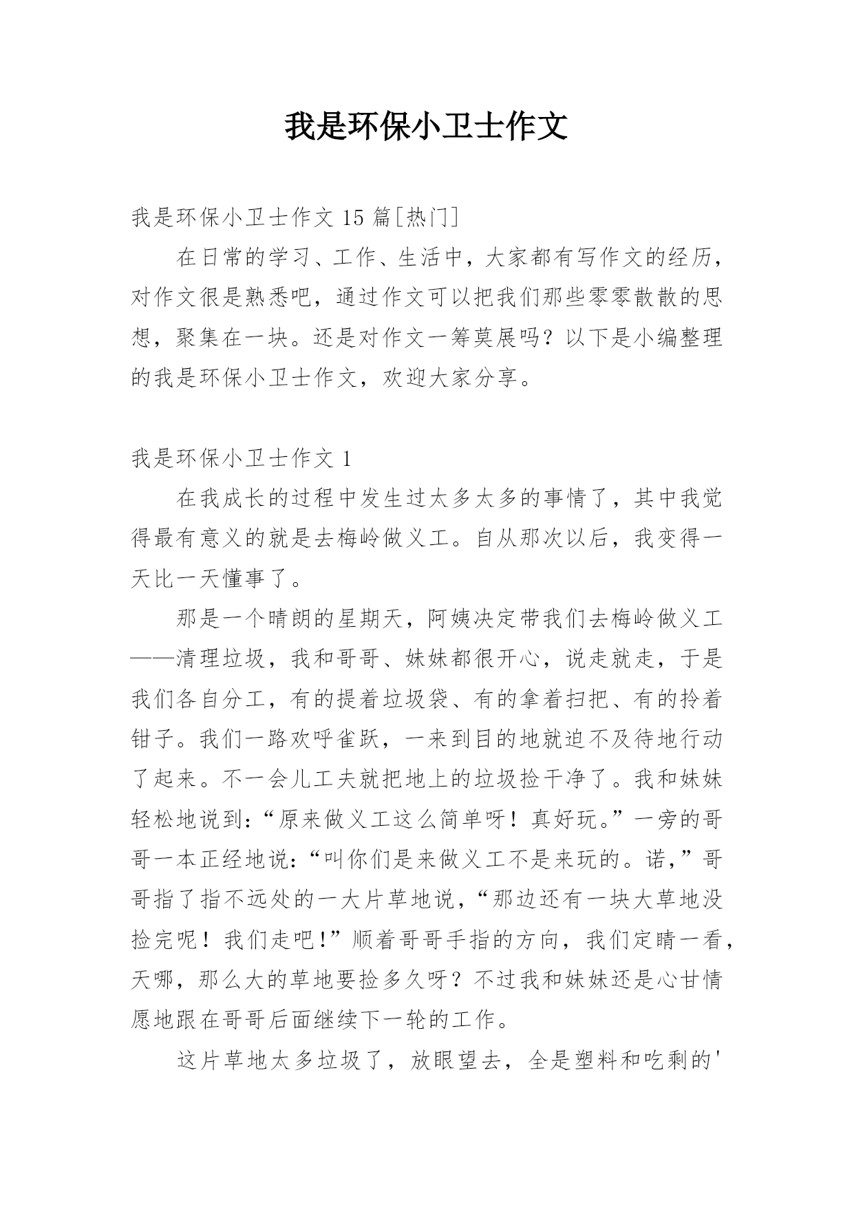 我是环保小卫士作文我是环保小卫士作文15篇[热门]在日常的学习、工作、生活中,大家都有写作文的经历,对作文很是熟悉吧,通过作文可以把我们那些零零散散的思想,聚集在一块。还是对作文一筹莫展吗?以下是小编整理的我是环保小卫士作文,欢迎大家分享。我是环保小卫士作文1在我成长的过程中发生过太多太多的事情了,其中我觉得最有意义的就是去梅岭做义工。自从那次以后,我变得一天比一天懂事了。那是一个晴朗的星期天,阿姨决定带我们去梅岭做义工——清理垃圾,我和哥哥、妹妹都很开心,说走就走,于是我们各自分工,有的提着垃圾袋、有的
