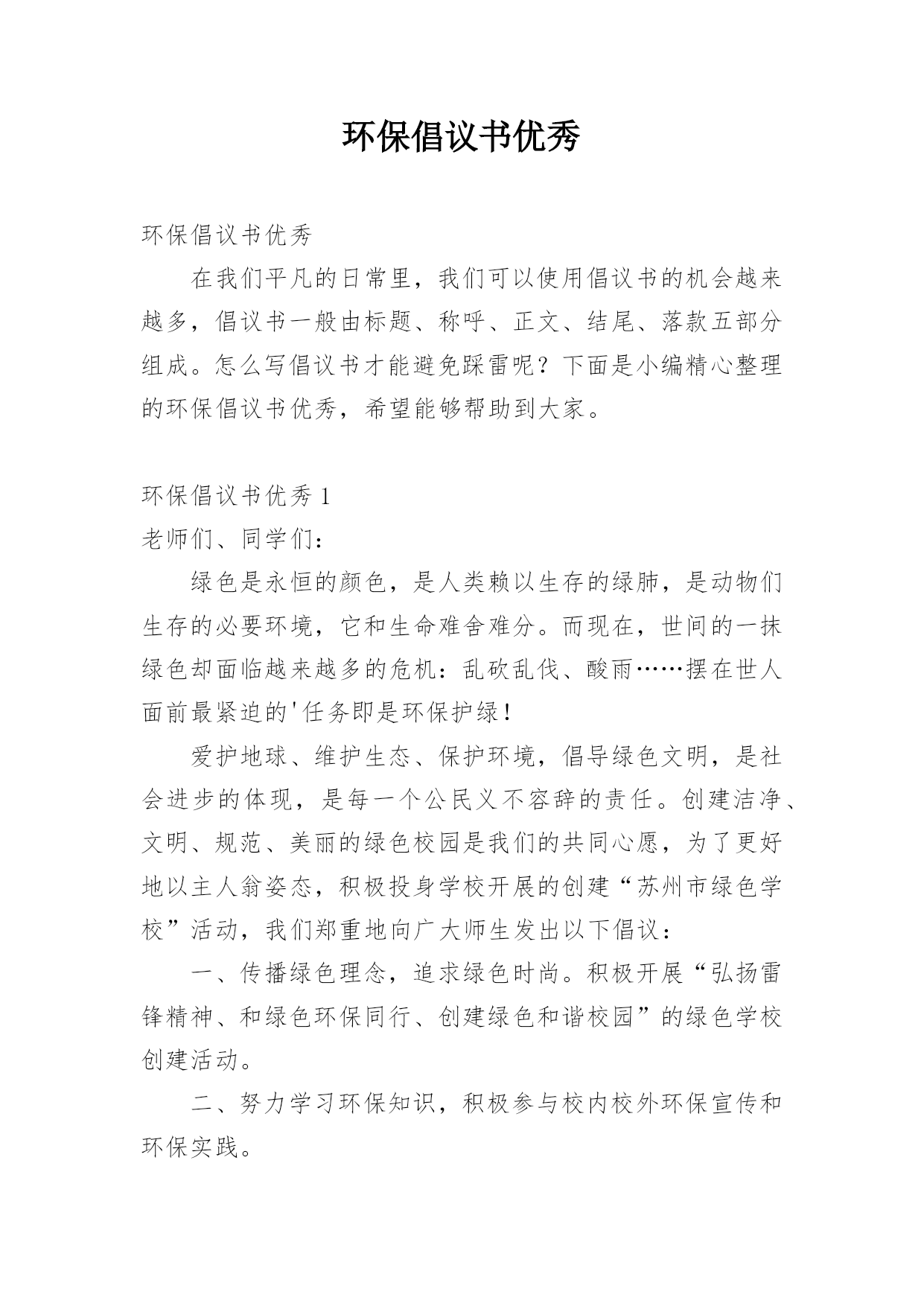 环保倡议书优秀环保倡议书优秀在我们平凡的日常里,我们可以使用倡议书的机会越来越多,倡议书一般由标题、称呼、正文、结尾、落款五部分组成。怎么写倡议书才能避免踩雷呢?下面是小编精心整理的环保倡议书优秀,希望能够帮助到大家。环保倡议书优秀1老师们、同学们:绿色是永恒的颜色,是人类赖以生存的绿肺,是动物们生存的必要环境,它和生命难舍难分。而现在,世间的一抹绿色却面临越来越多的危机:乱砍乱伐、酸雨……摆在世人面前最紧迫的'任务即是环保护绿!爱护地球、维护生态、保护环境,倡导绿色文明,是社会进步的体现,是每一个公民义