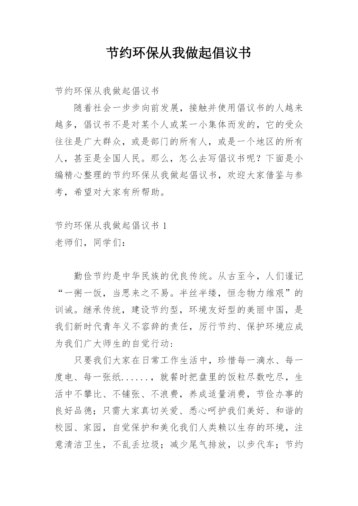 节约环保从我做起倡议书节约环保从我做起倡议书随着社会一步步向前发展,接触并使用倡议书的人越来越多,倡议书不是对某个人或某一小集体而发的,它的受众往往是广大群众,或是部门的所有人,或是一个地区的所有人,甚至是全国人民。那么,怎么去写倡议书呢?下面是小编精心整理的节约环保从我做起倡议书,欢迎大家借鉴与参考,希望对大家有所帮助。节约环保从我做起倡议书1老师们,同学们:勤俭节约是中华民族的优良传统。从古至今,人们谨记“一粥一饭,当思来之不易。半丝半缕,恒念物力维艰”的训诫。继承传统,建设节约型,环境友好型的美丽中
