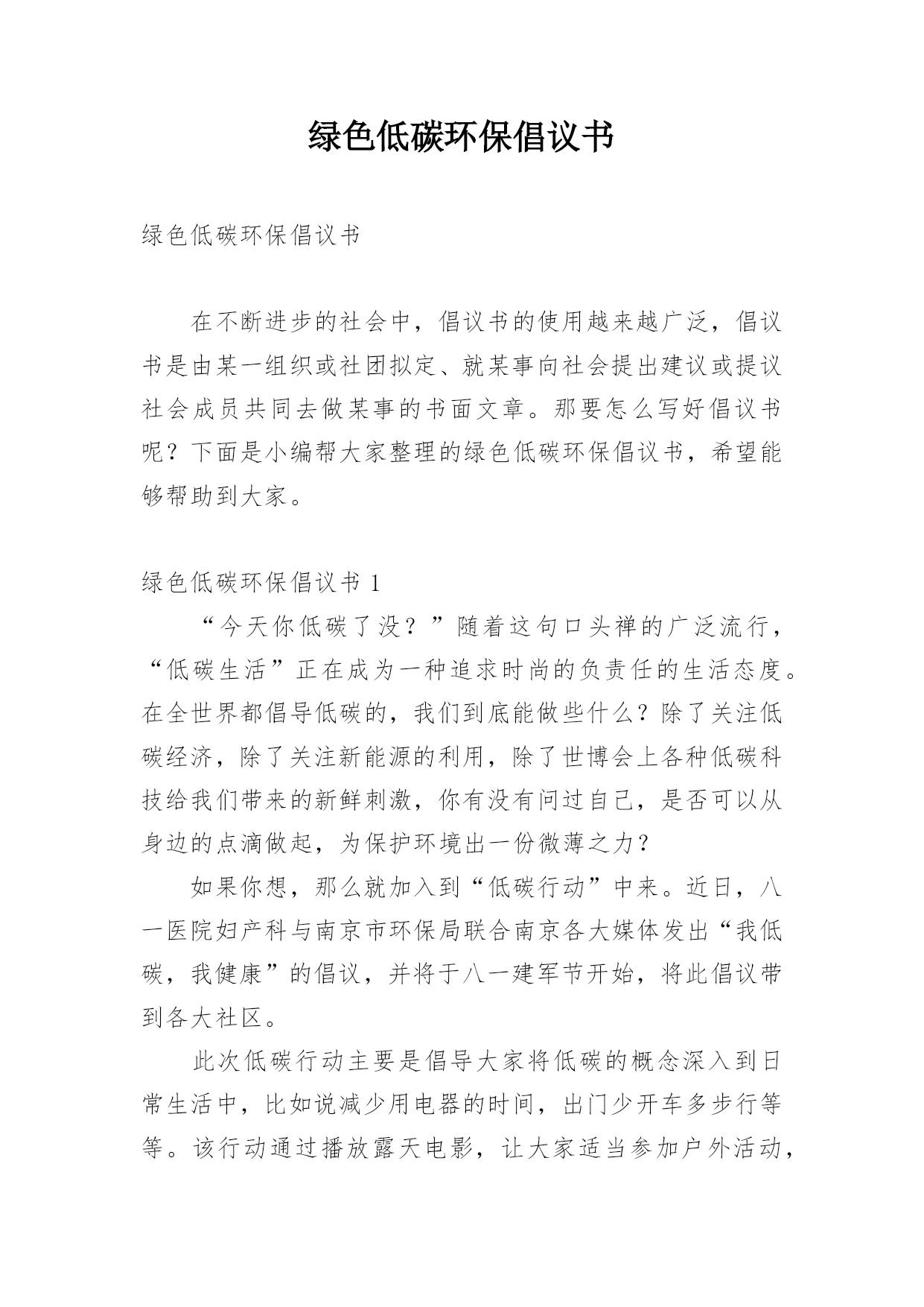 绿色低碳环保倡议书.docx