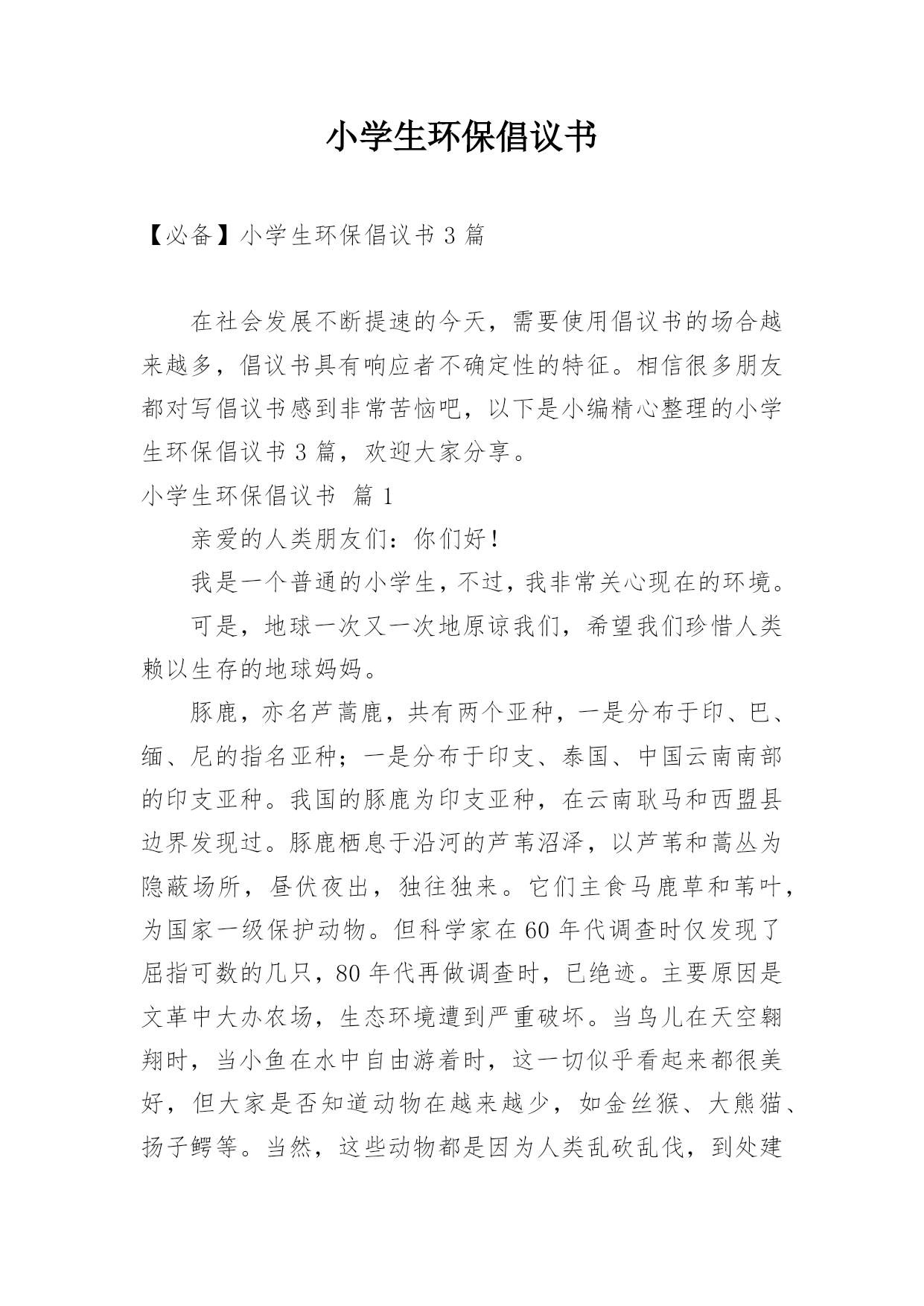 小学生环保倡议书【必备】小学生环保倡议书3篇在社会发展不断提速的今天,需要使用倡议书的场合越来越多,倡议书具有响应者不确定性的特征。相信很多朋友都对写倡议书感到非常苦恼吧,以下是小编精心整理的小学生环保倡议书3篇,欢迎大家分享。小学生环保倡议书篇1亲爱的人类朋友们:你们好!我是一个普通的小学生,不过,我非常关心现在的环境。可是,地球一次又一次地原谅我们,希望我们珍惜人类赖以生存的地球妈妈。豚鹿,亦名芦蒿鹿,共有两个亚种,一是分布于印、巴、缅、尼的指名亚种;一是分布于印支、泰国、中国云南南部的印支亚种。我国