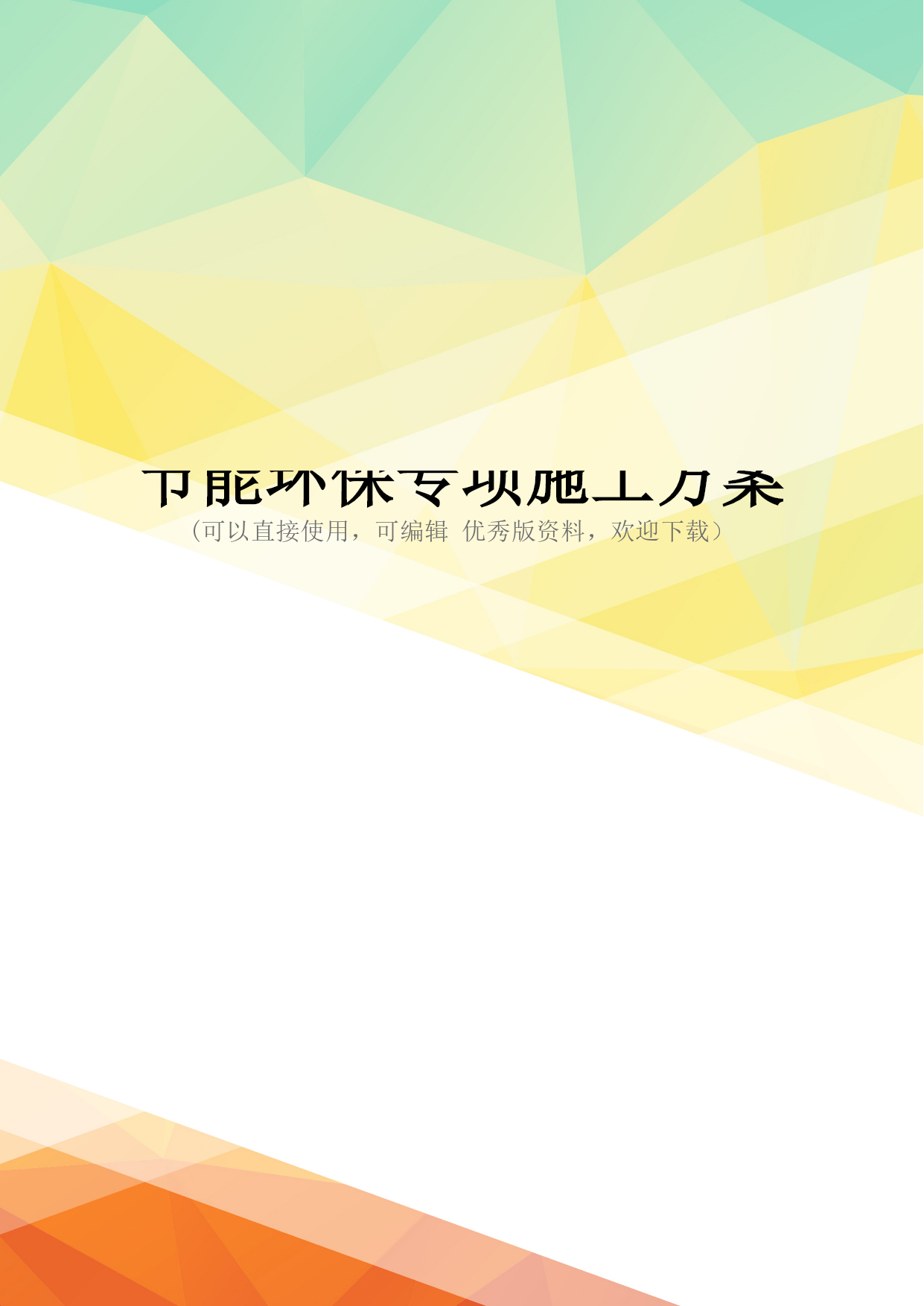 节能环保专项施工方案(可以直接使用,可编辑优秀版资料,欢迎下载)五家渠市水岸香居住宅小区项目环保节能专项方案编制人:审核人:审批人:编制日期:目录TOC\o”1-3"\h\z\uHYPERLINK\l"_Toc308967456”第一章工程概况PAGEREF_Toc308967456\h—2—HYPERLINK\l"_Toc308967457”第二章施工内容、绿色施工目标PAGEREF_Toc308967457\h—2-HYPERLINK\l"_Toc308967458"第